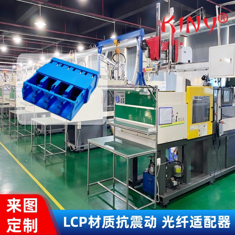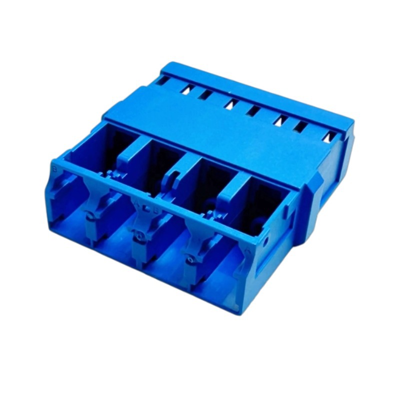 Изготовленная по индивидуальному заказу литьевая пластмасса LCP по чертежам. Высокоплотный антивибрационный дуплексный оптоволоконный адаптер. Литьевое формование с открытием формы.