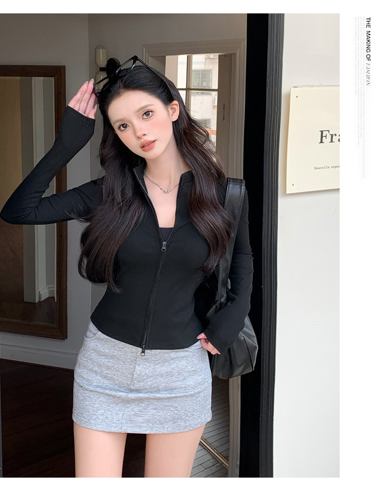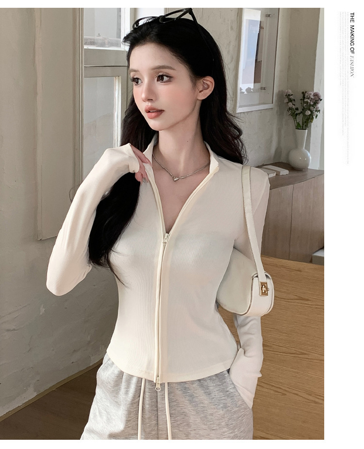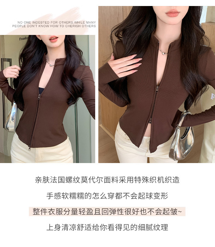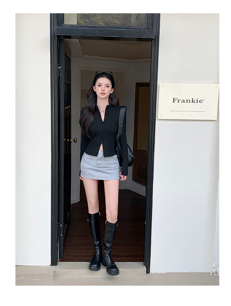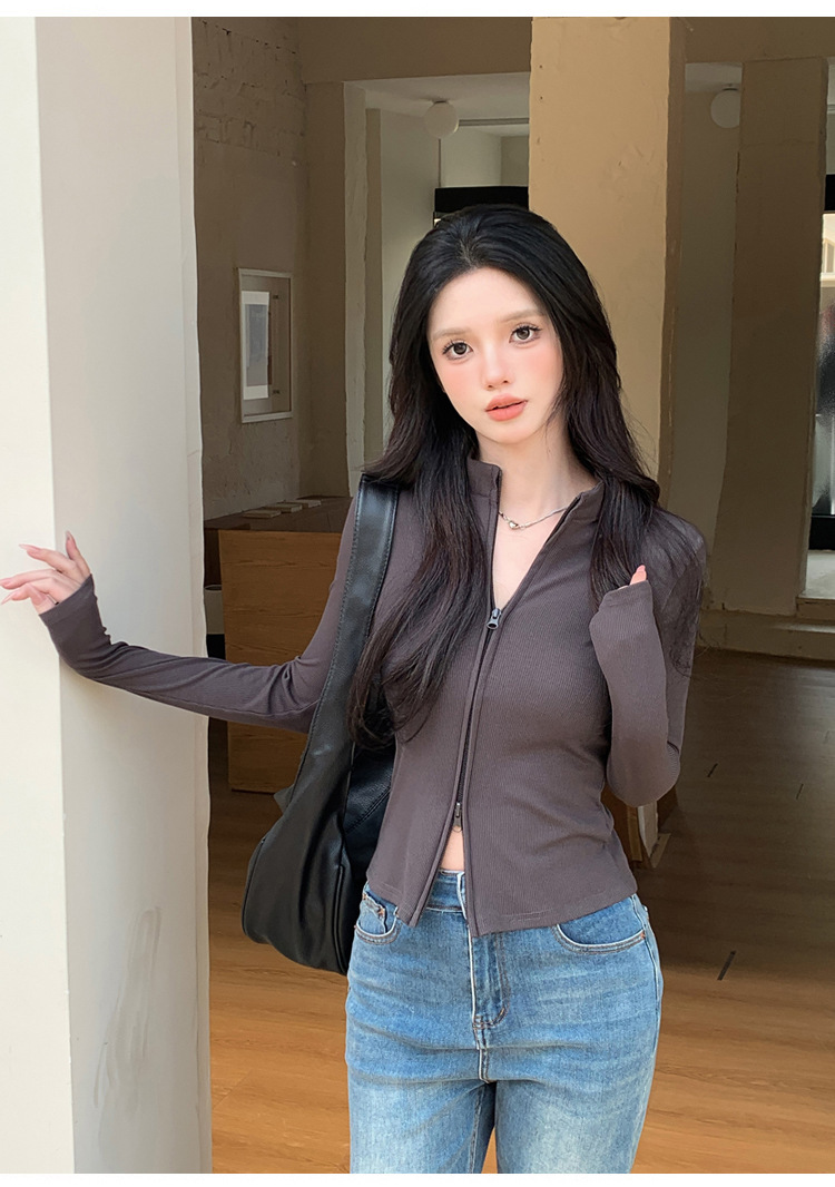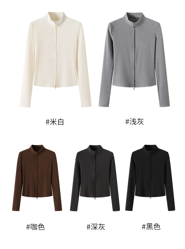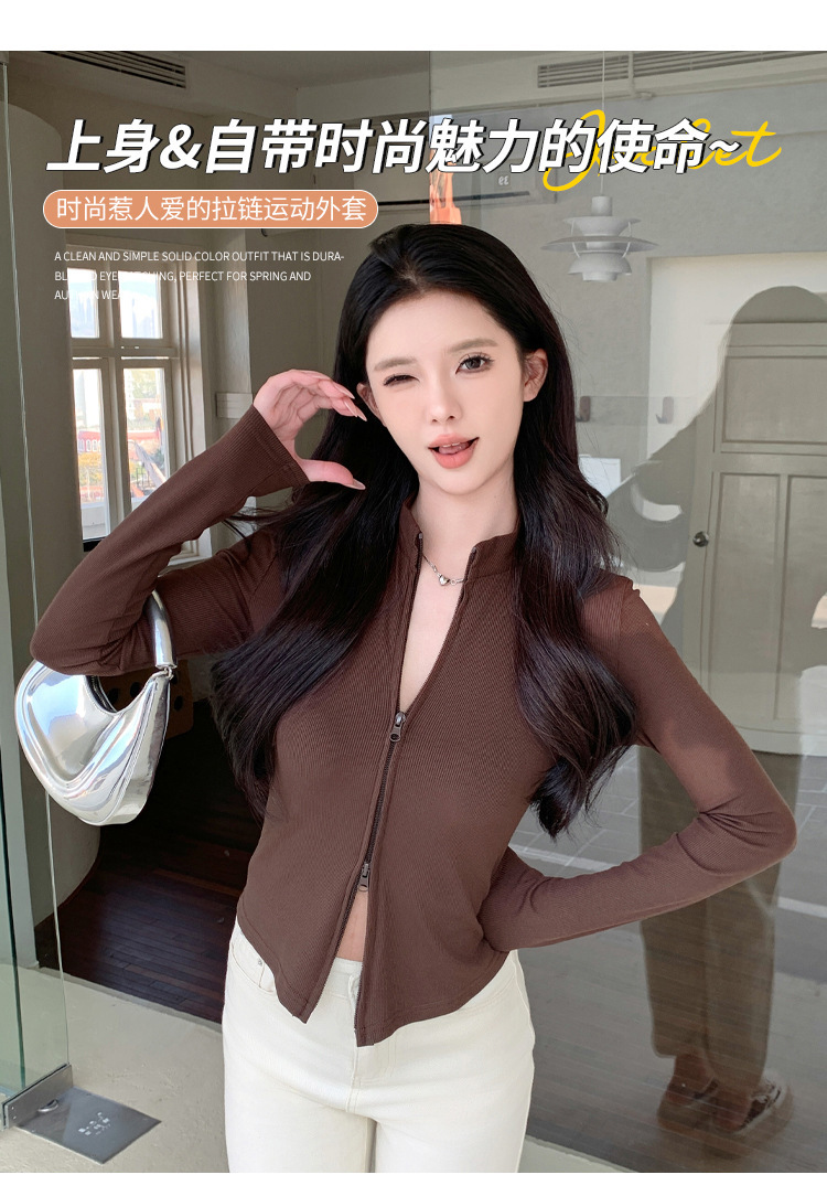 H823 куртка с двойной молнией и воротником-стойкой, женская весенне-осенняя новая вязаная куртка-кардиган, облегающий универсальный короткий топ с длинными рукавами