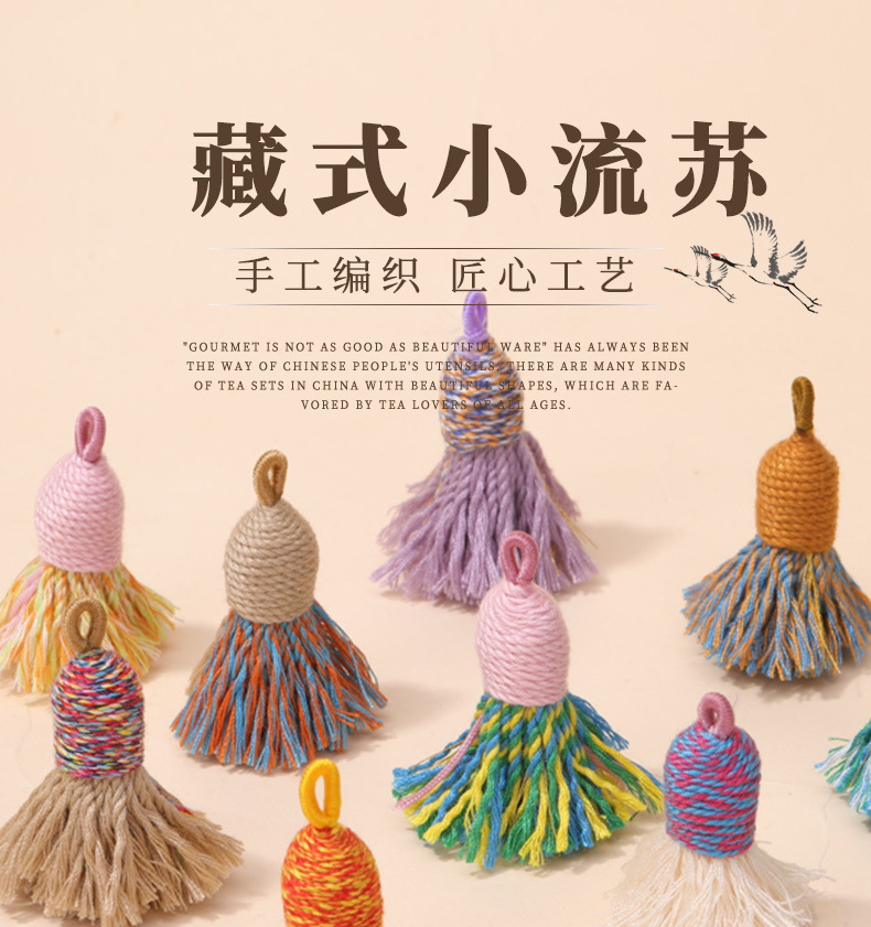 Тибетский кисть-подвеска ручной работы из хлопковой нити, короткая и пышная, для рукоделия, миниатюрные тибетские аксессуары, украшение для ручного творчества, подвеска для декора