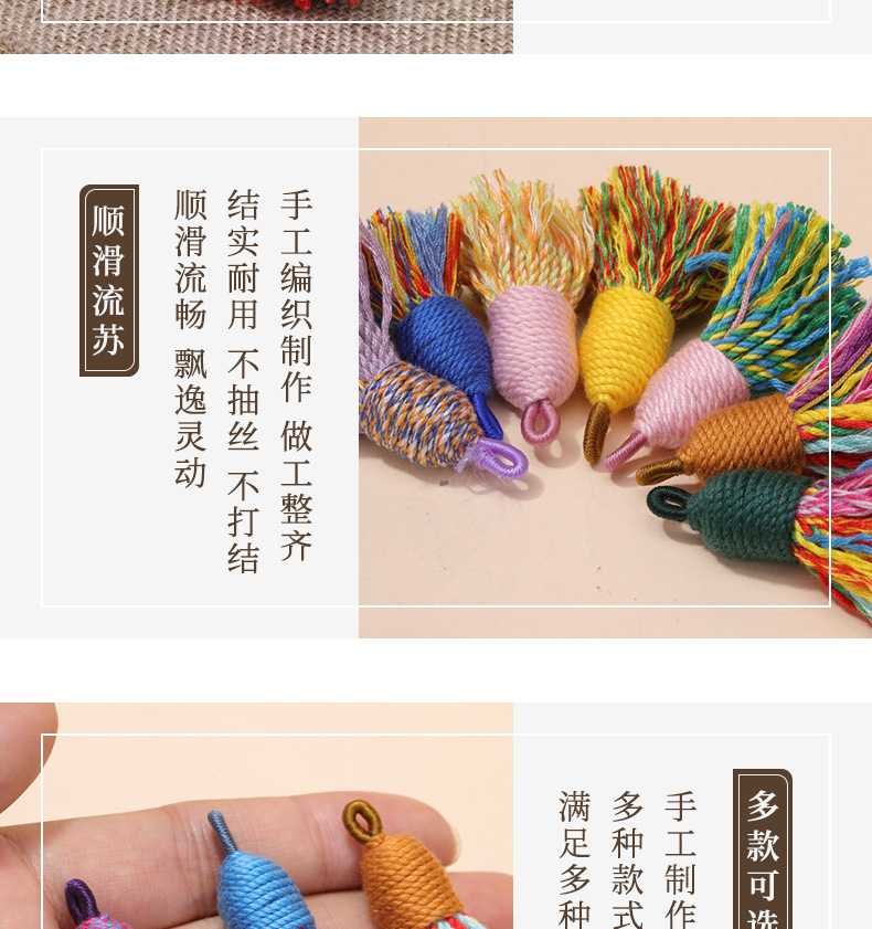Тибетский короткий и толстый ручной хлопковый шнур с небольшим кулоном в виде кисточки