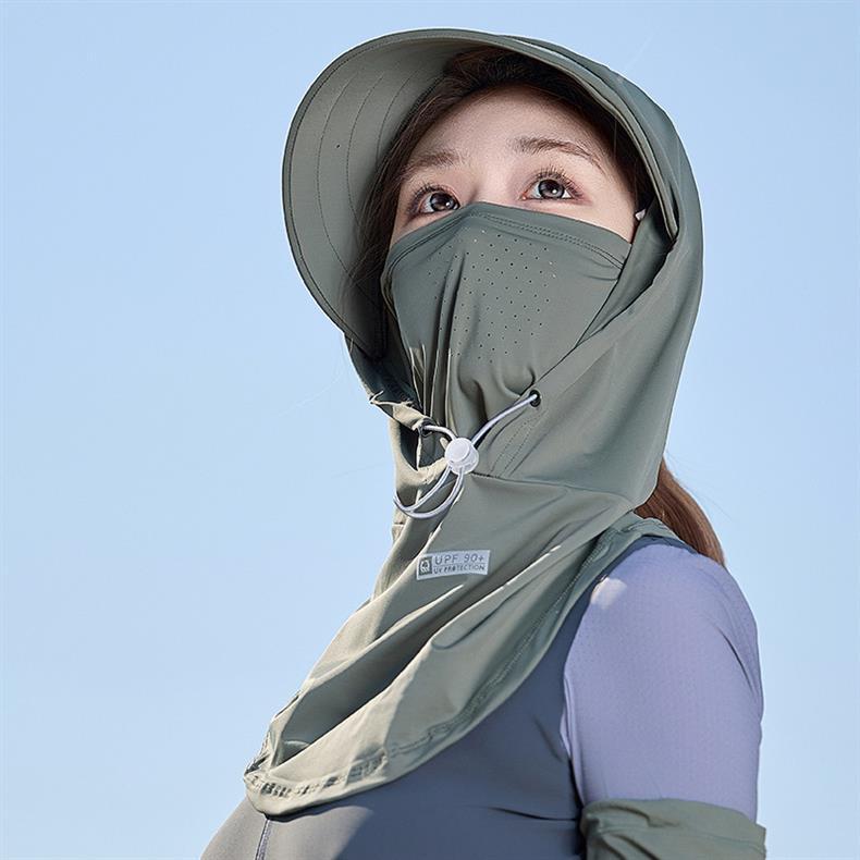 Летняя солнцезащитная шляпа для женщин, езда на велосипеде, защита от ультрафиолета, шляпа с большими полями, полная защита шеи, дышащая уличная велосипедная маска из ледяного шелка