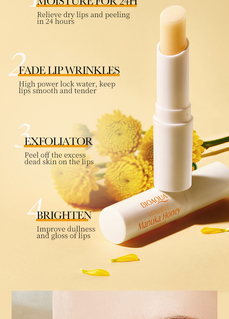 Трансграничная внешняя торговля BIOAOUA витамин Е медовая помада увлажняющий увлажняющий анти-сухие трещины и осветление бальзам для губ