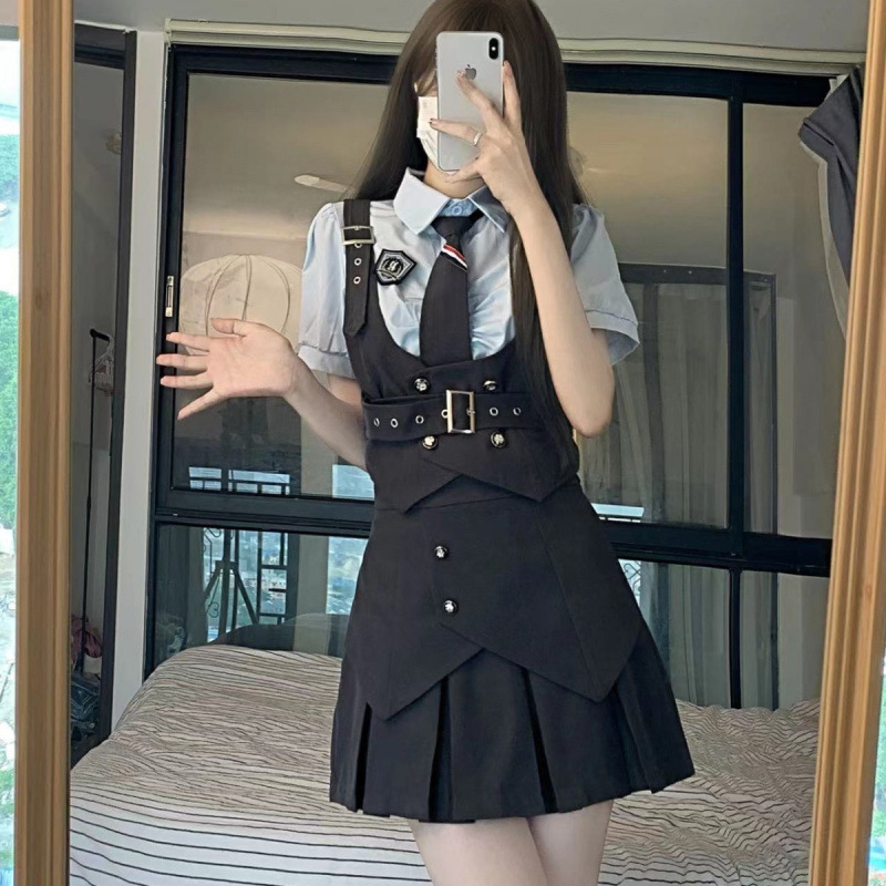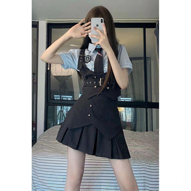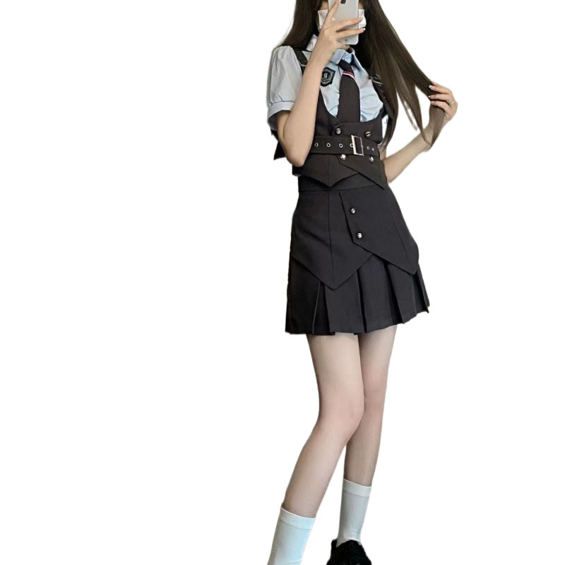 Японский jk униформа колледжа ветер серый ветер, талия тонкая жилет с короткими рукавами рубашка плиссированная юбка костюм женский летний