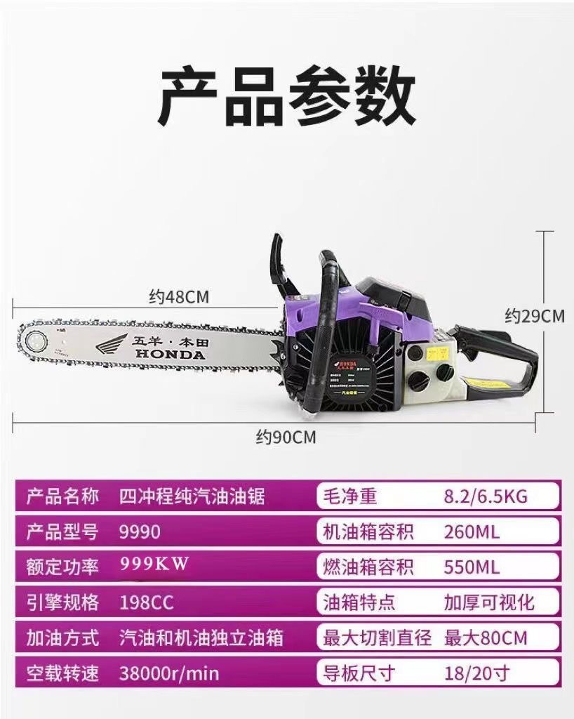 Оригинальная импортная бензиновая пила высокой мощности, четырехтактная лесозаготовительная пила на чистом бензине, экономичная и эффективная машина для валки деревьев