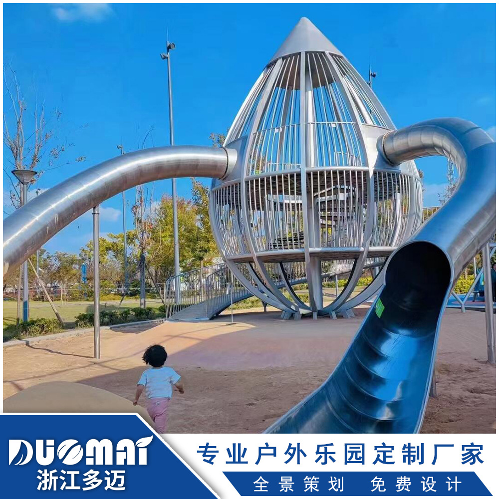 Нестандартная уличная горка из нержавеющей стали, большая горка из нержавеющей стали, аттракцион в форме домика на дереве для сообщества