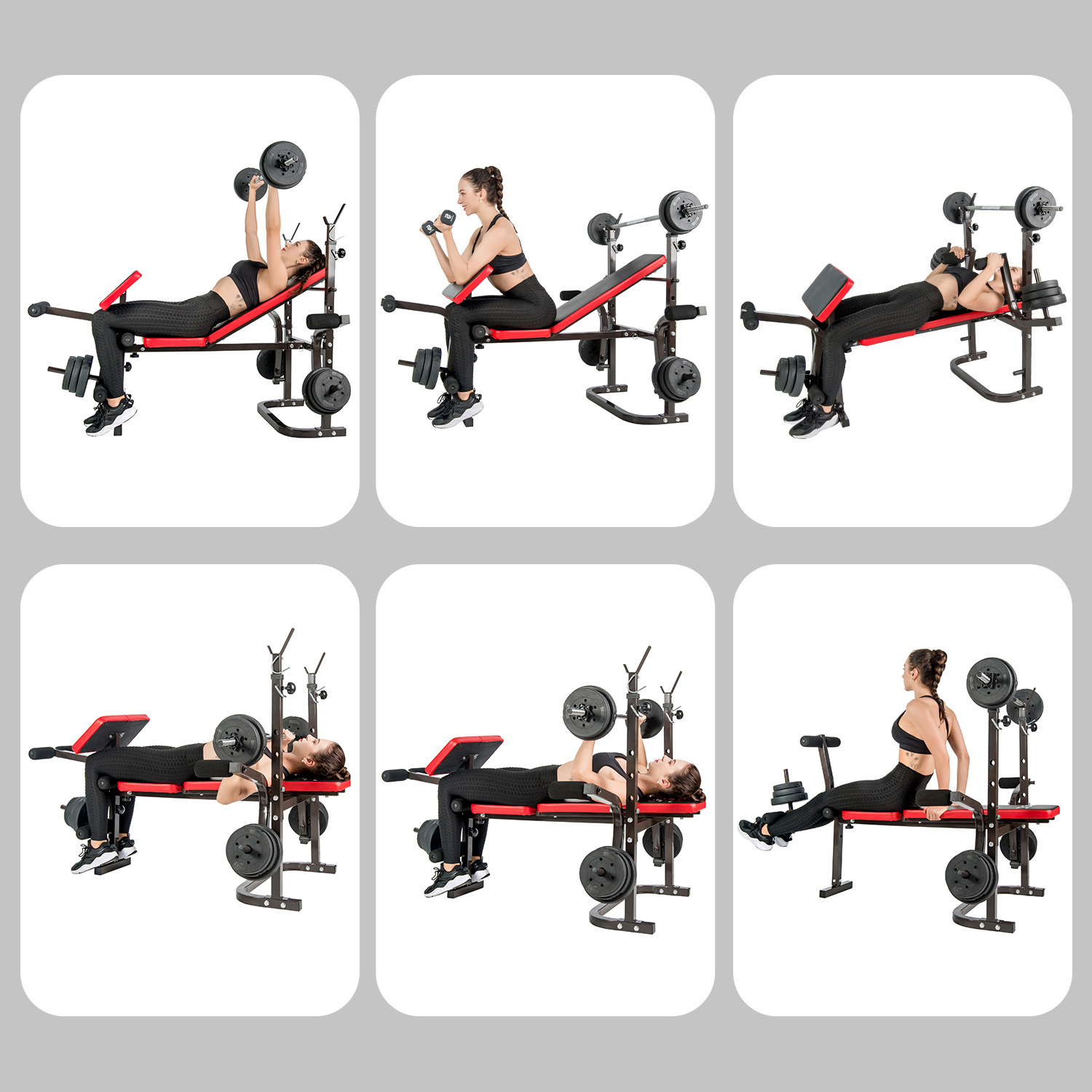 Многофункциональный тренажер для тяжелой атлетики и фитнеса с регулируемой скамьей для жима лежа, складной скамьей для жима гантелей и скамьей для скручиваний