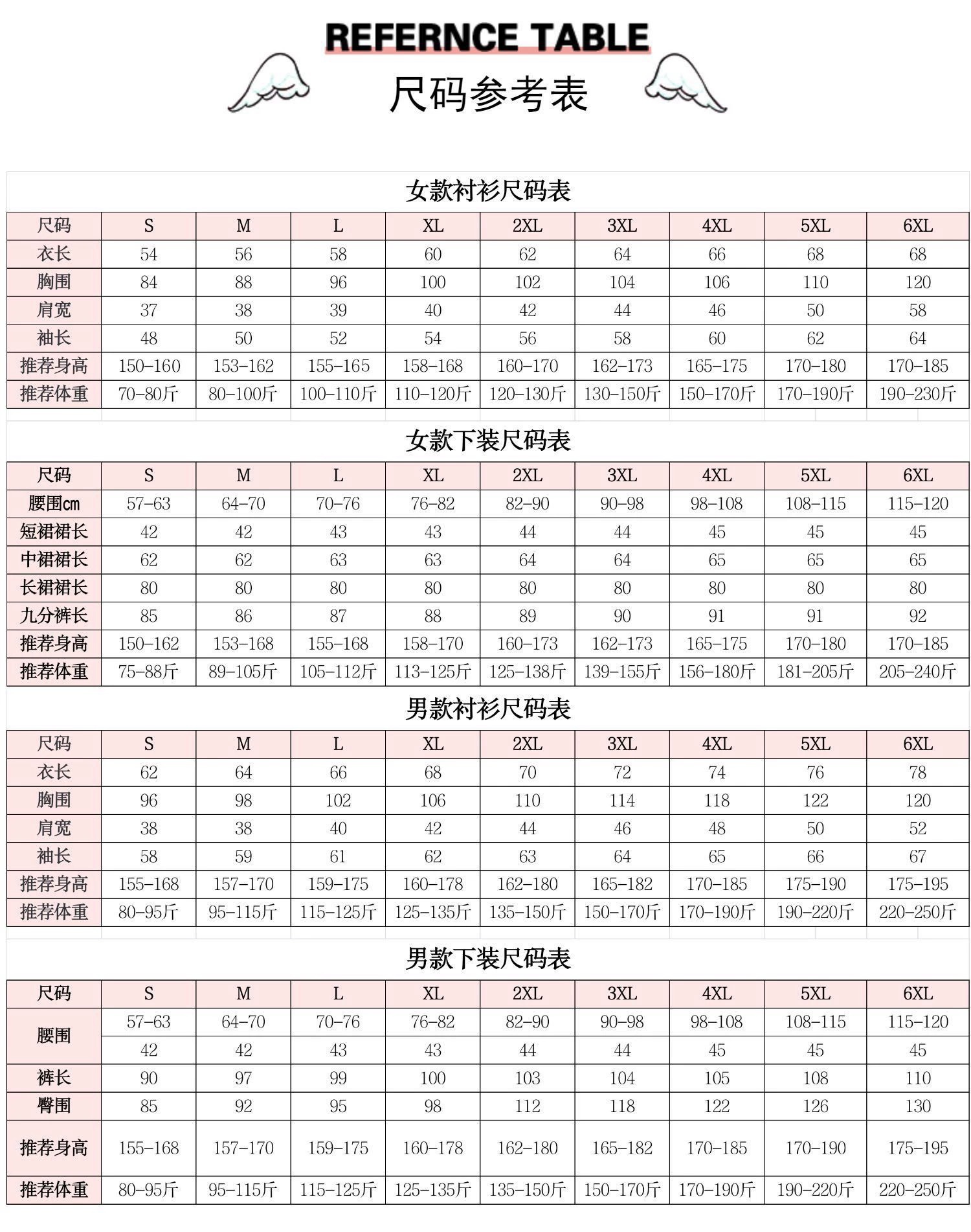 XS; S; M; L; XL; 2XL; 3XL; 4XL; 5XL