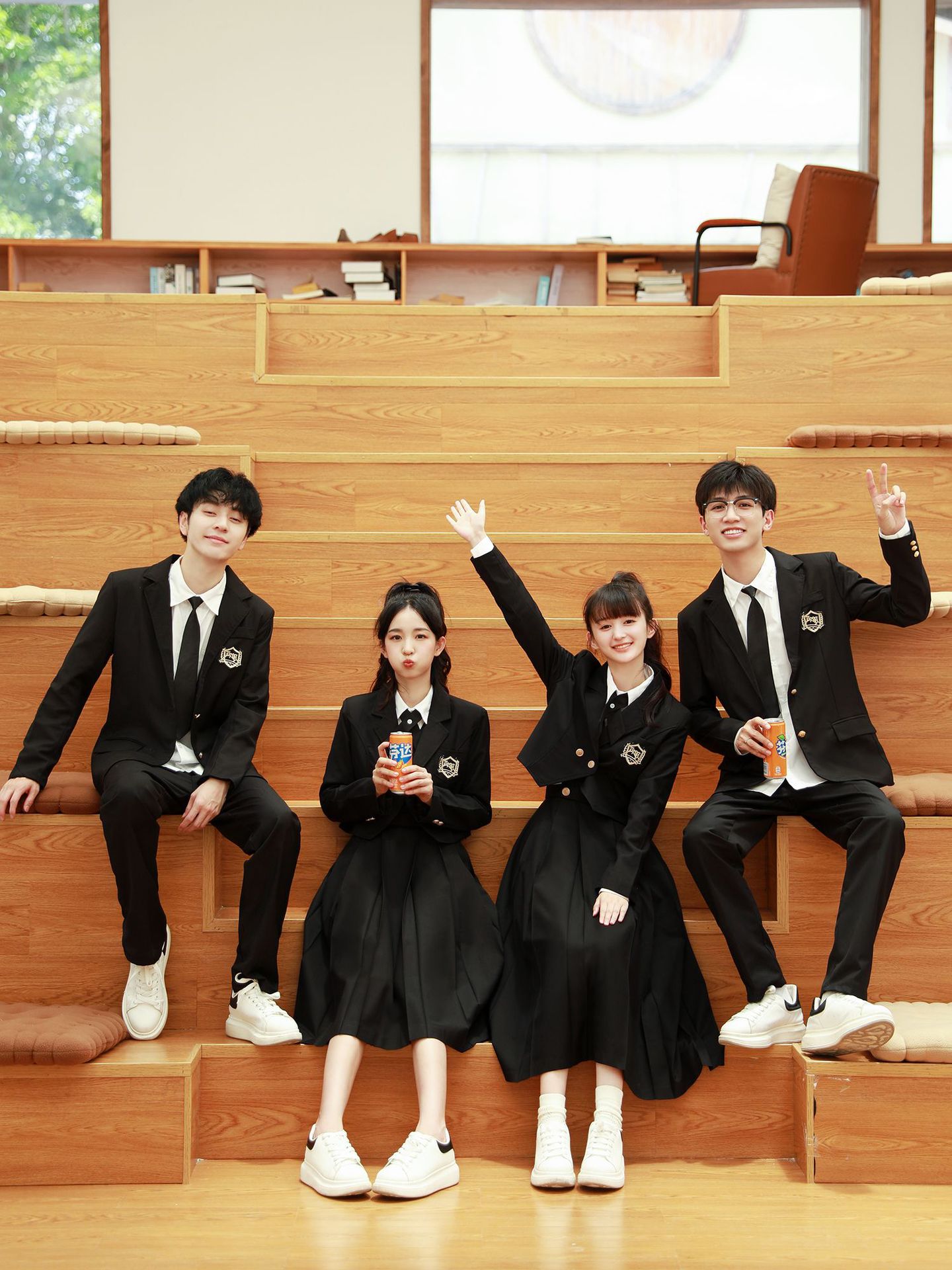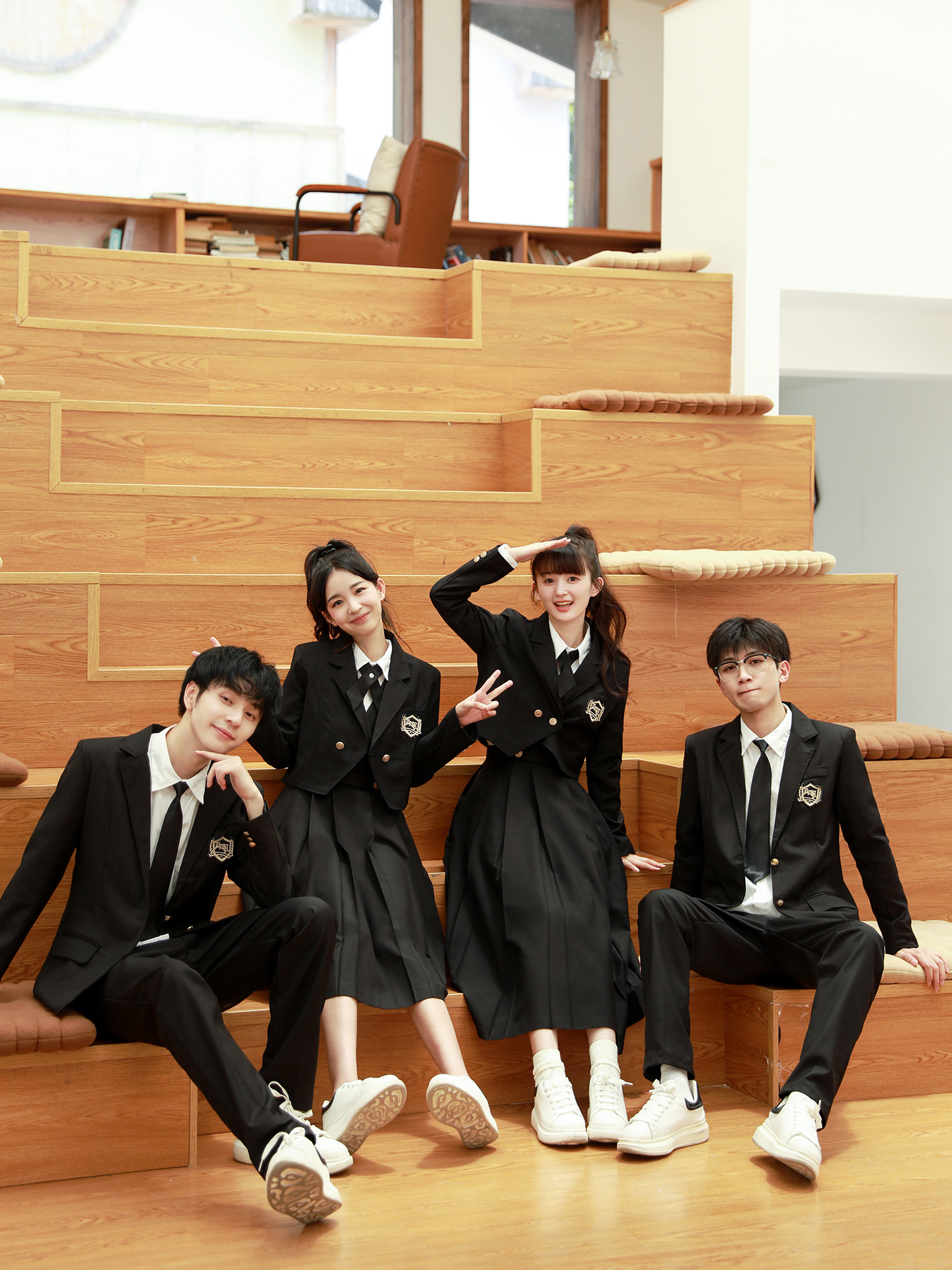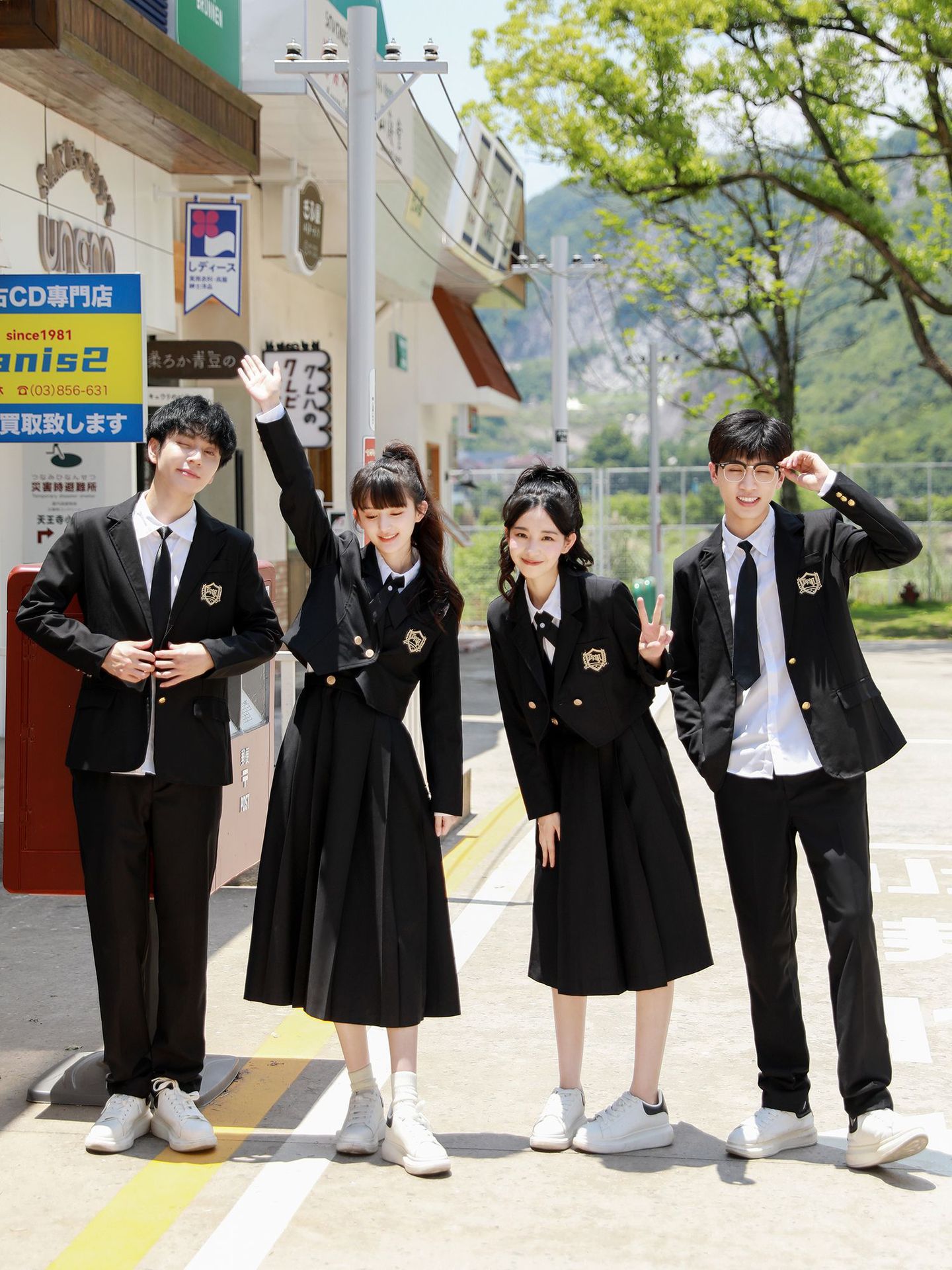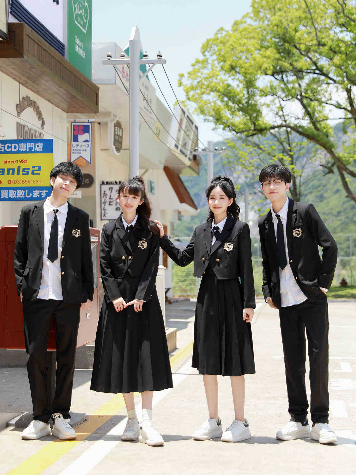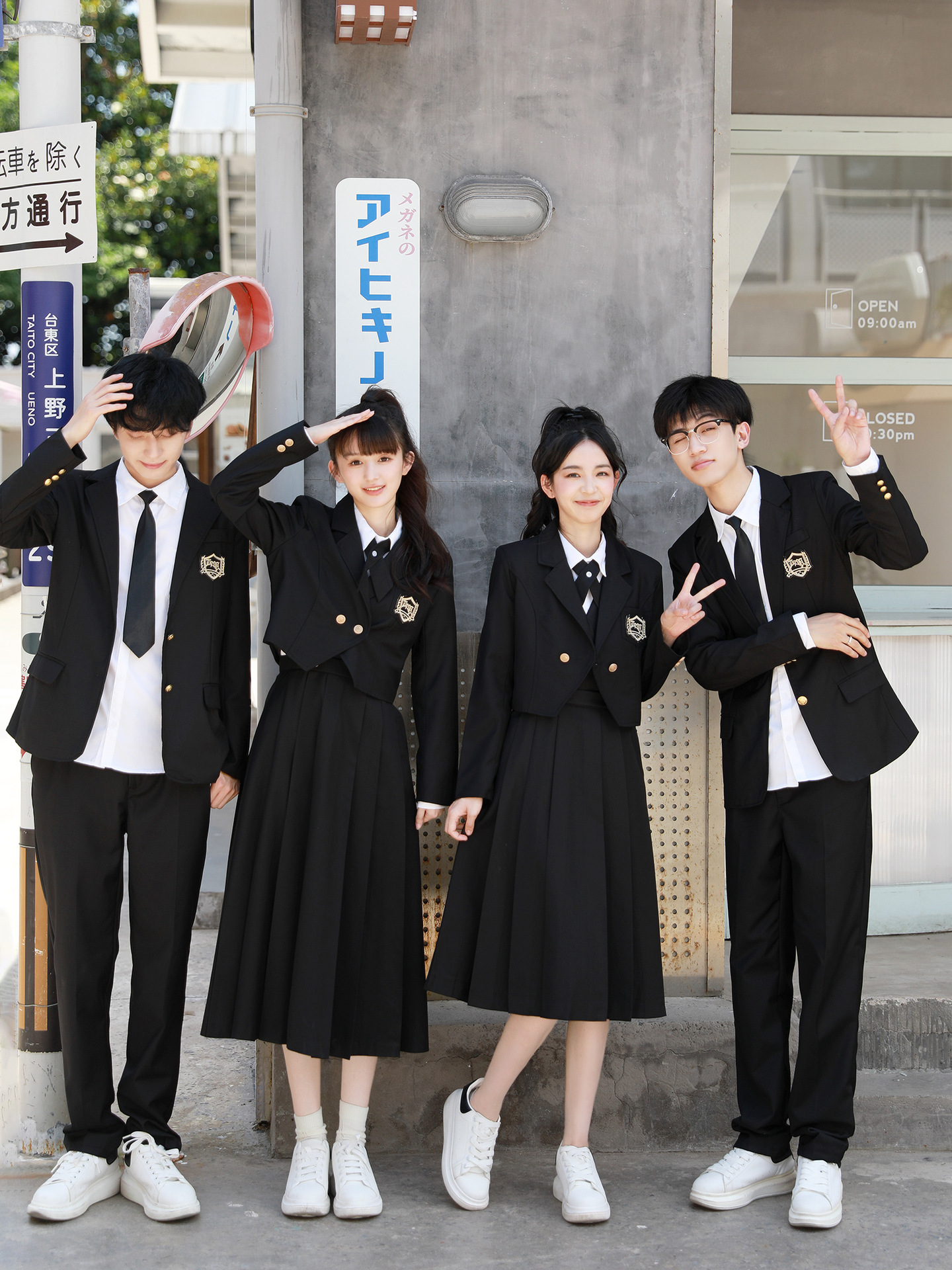 Женский белый длинный рукав + черная юбка + короткий костюм + крестовый узел; Женский белый длинный рукав + черная юбка миди + короткий костюм + перекрестный узел; Женский белый длинный рукав + черная длинная юбка + короткий костюм + перекрестный узел; Мужские белые длинные рукава + черные брюки + черный костюм + черный галстук; Белые короткие рукава + крестик.; Белые короткие рукава + черный галстук.