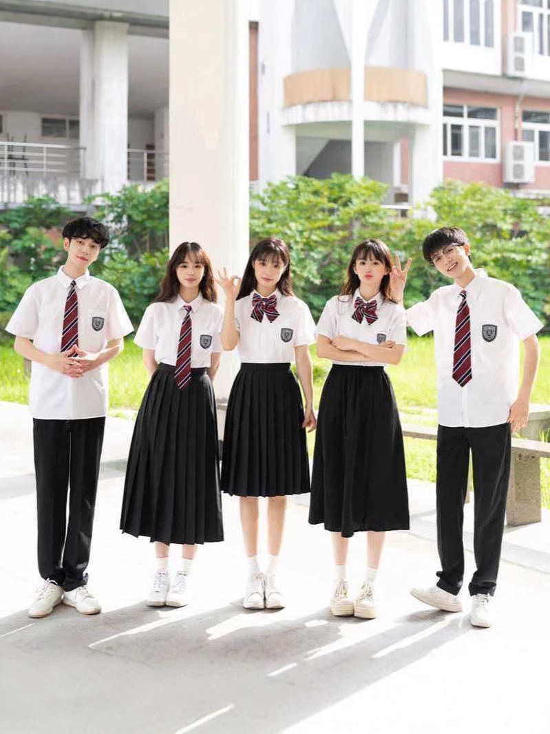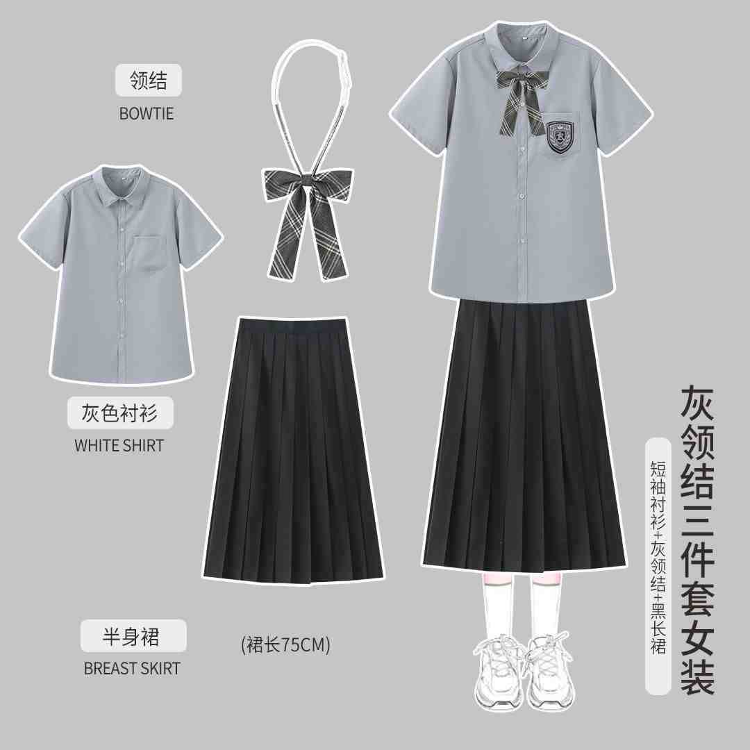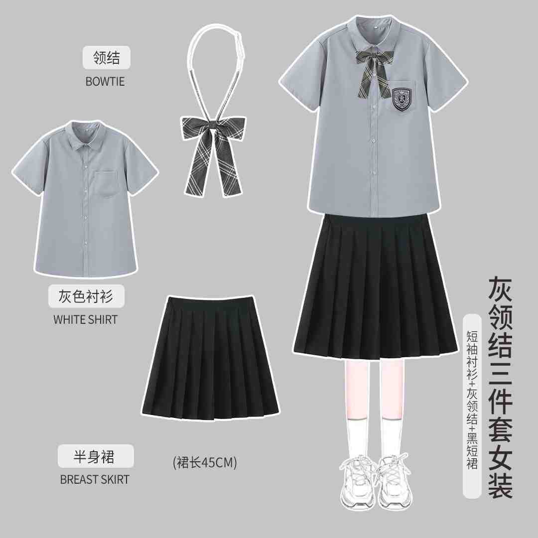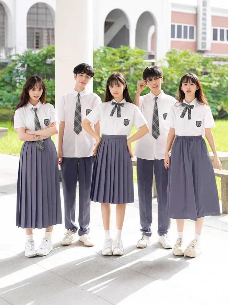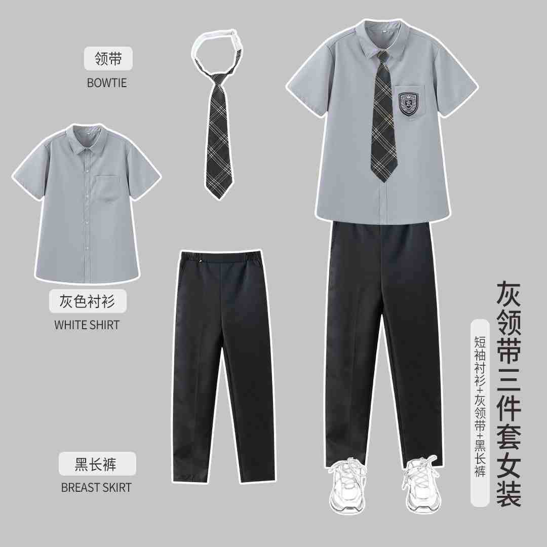 Женская белая рубашка с короткими рукавами + черная юбка миди + галстук-бабочка в красно-синюю полоску.; Женская белая рубашка с короткими рукавами + черная длинная юбка + галстук-бабочка в красно-синюю полоску.; Женская белая рубашка с короткими рукавами + черная юбка + галстук-бабочка в красно-синюю полоску.; Мужские белые короткие рукава + черные брюки + галстук в красно-синюю полоску.; Женская белая длинная рукава + черная юбка миди + галстук-бабочка в красно-синюю полоску.; Женский белый длинный рукав + черная длинная юбка + галстук-бабочка в красно-синюю полоску.; Женская белая длинная рукава + черная юбка + галстук-бабочка в красно-синюю полоску.; Мужские белые длинные рукава + черные брюки + галстук в красно-синюю полоску.; Женская белая рубашка с короткими рукавами + темно-серая юбка + серый клетчатый галстук-бабочка.; Женская белая рубашка с короткими рукавами + темно-серая юбка миди + серый клетчатый галстук-бабочка.; Женский белый длинный рукав + темно-серая юбка + серый клетчатый галстук-бабочка.; Женские белые длинные рукава + темно-серая юбка миди + серый клетчатый галстук-бабочка.; Мужская белая рубашка с короткими рукавами + темно-серые брюки + серый клетчатый галстук.; Мужские белые длинные рукава + темно-серые брюки + серый клетчатый галстук.; Мужские серые короткие рукава + черные брюки + серый клетчатый галстук; Мужские серые длинные рукава + черные брюки + серый клетчатый галстук; Женская серая с короткими рукавами + черная юбка + серый клетчатый галстук-бабочка; Женская серая с короткими рукавами + черная юбка миди + серый клетчатый галстук-бабочка; Женская серая с короткими рукавами + черная плиссированная длинная юбка + серый клетчатый галстук-бабочка; Женский серый длинный рукав + черная юбка + серый клетчатый галстук-бабочка; Женский серый длинный рукав + черная юбка миди + серый клетчатый галстук-бабочка; Женские серые длинные рукава + черная плиссированная длинная юбка + серый клетчатый галстук-бабочка