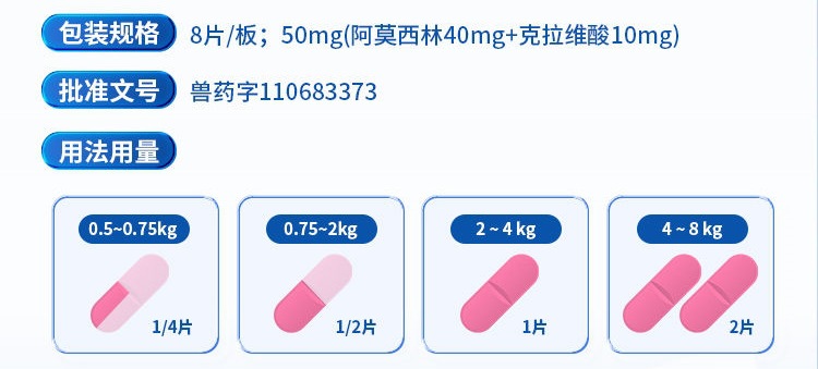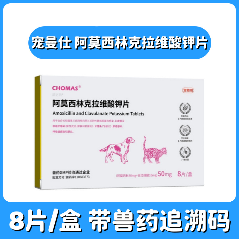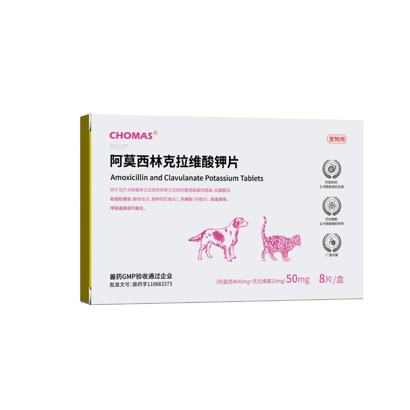 Таблетки амоксициллина с клавуланатом калия Чонгманши 50 мг для кошек и собак при гингивите, инфекциях мочевыводящих путей и дыхательных путях