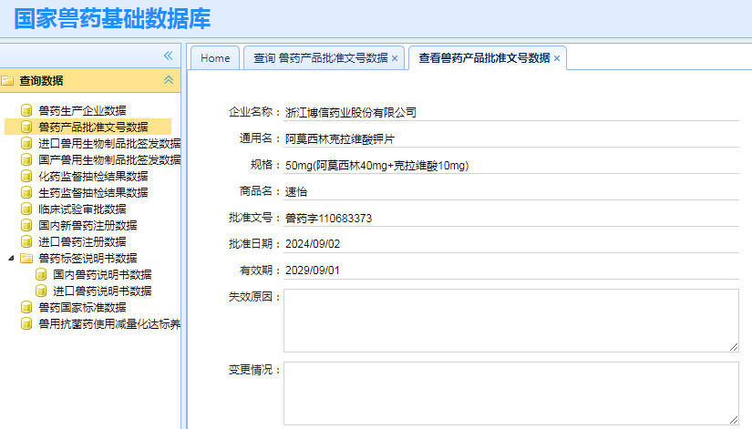 Номер одобрения ветеринарного лекарственного средства: