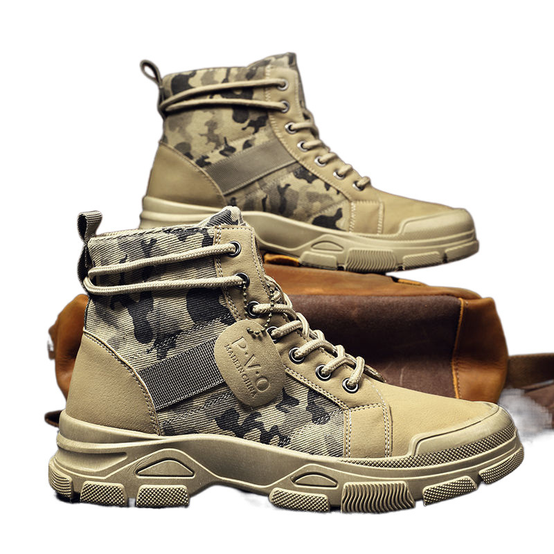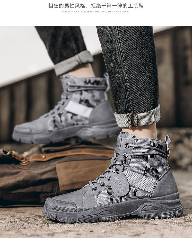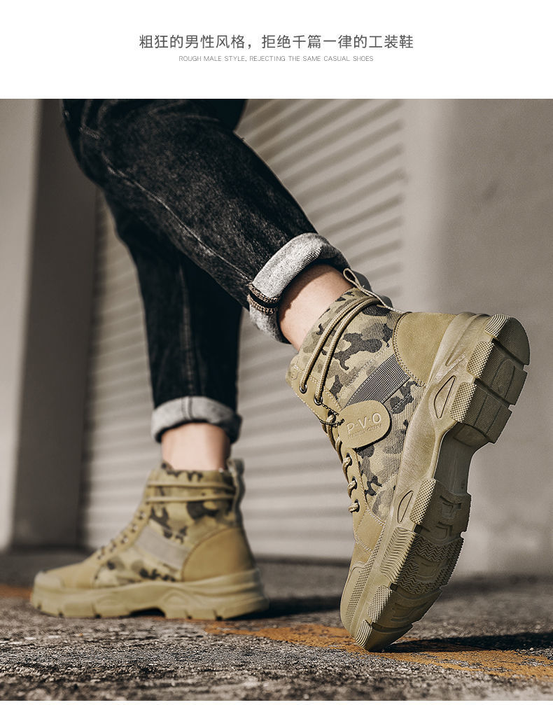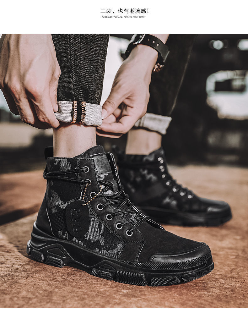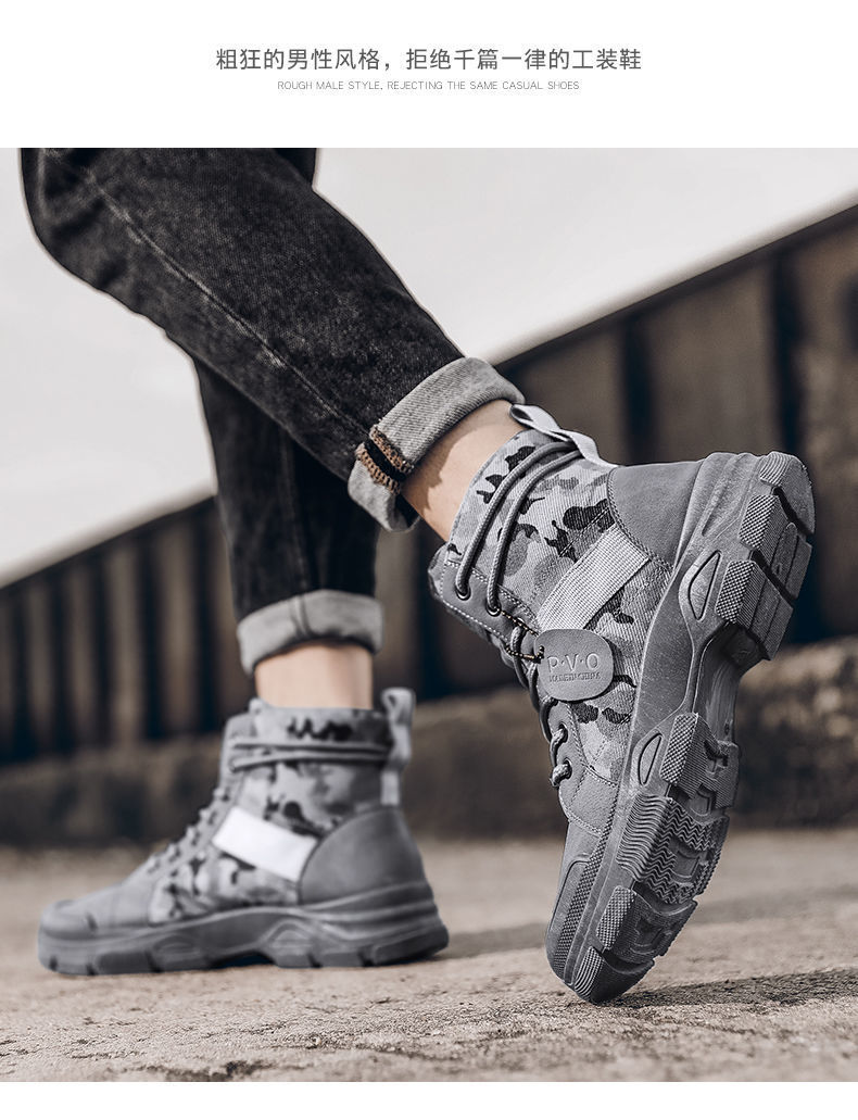 Мужская рабочая обувь, осенние дышащие полусапоги, туфли с высоким берцем, корейский стиль, британский тренд, камуфляж, китайская рабочая обувь, мужская модная обувь
