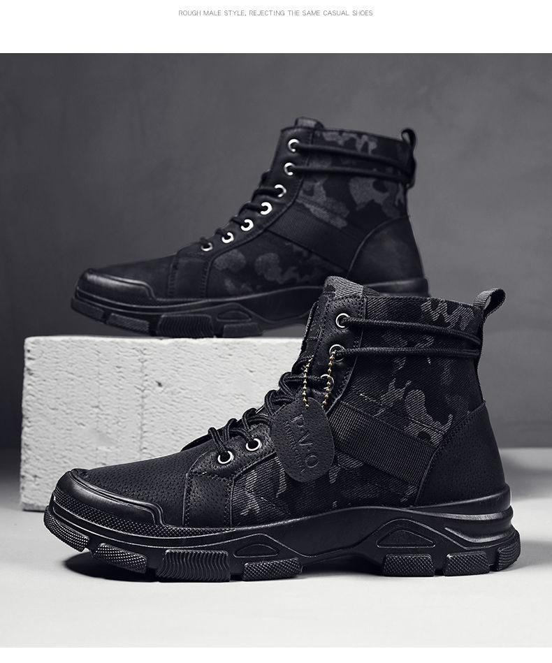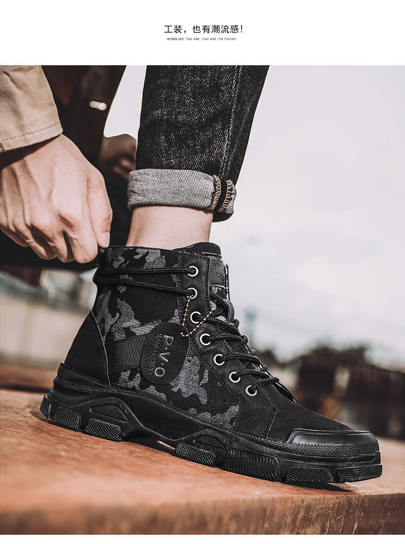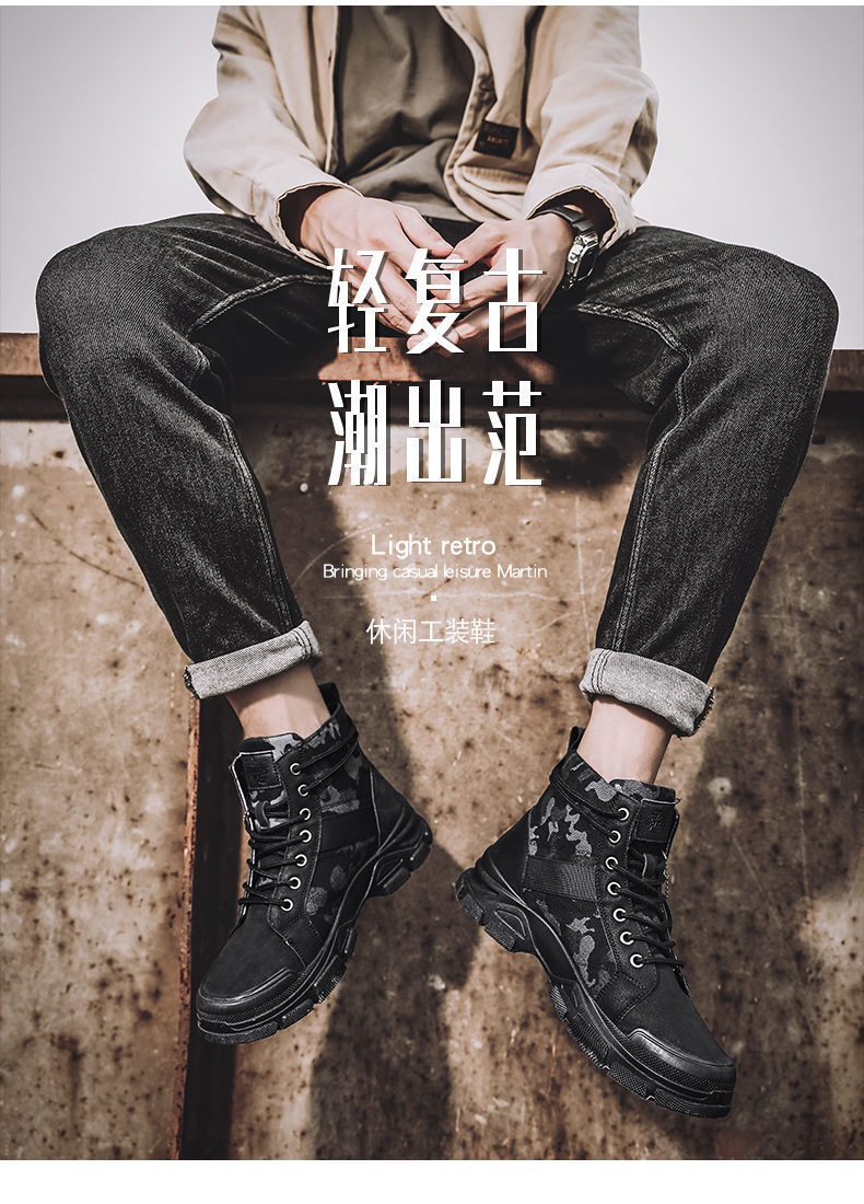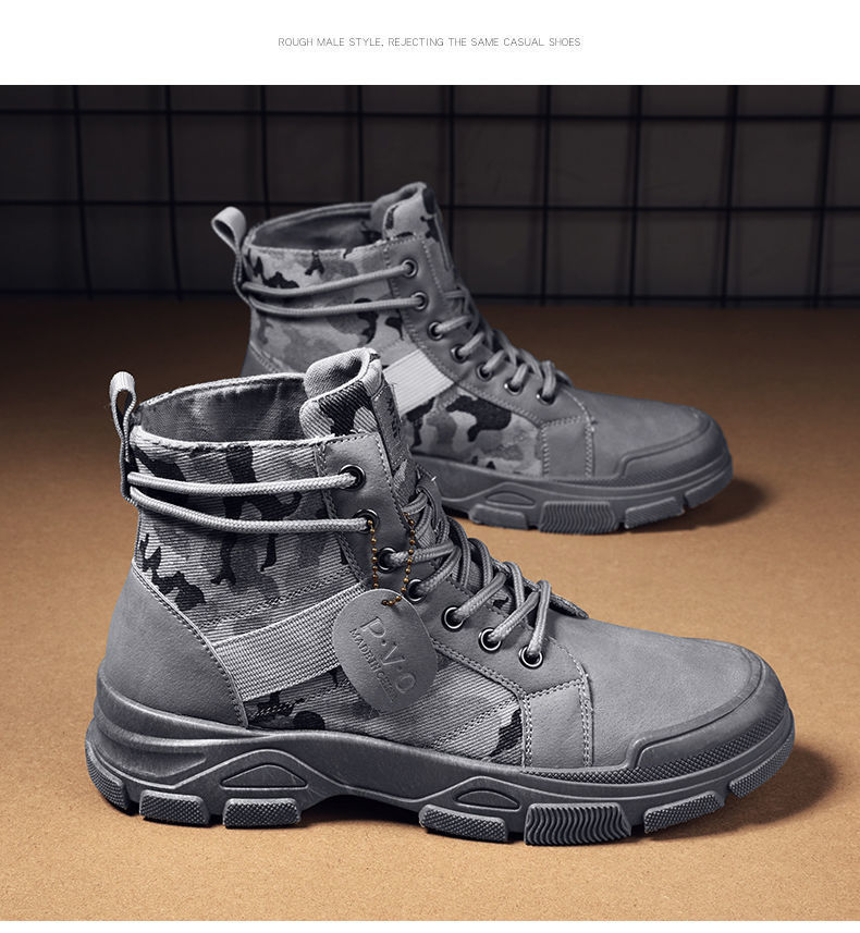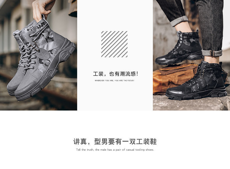 Мужская рабочая обувь, осенние дышащие полусапоги, туфли с высоким берцем, корейский стиль, британский тренд, камуфляж, китайская рабочая обувь, мужская модная обувь