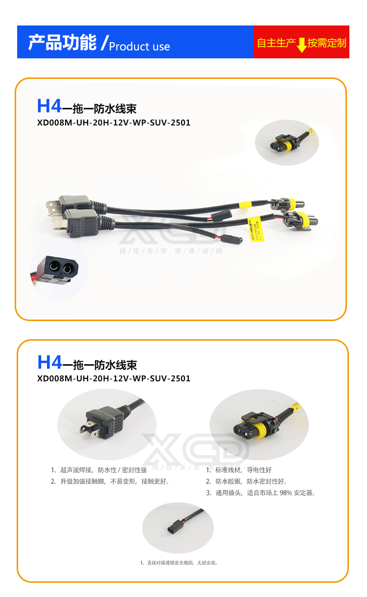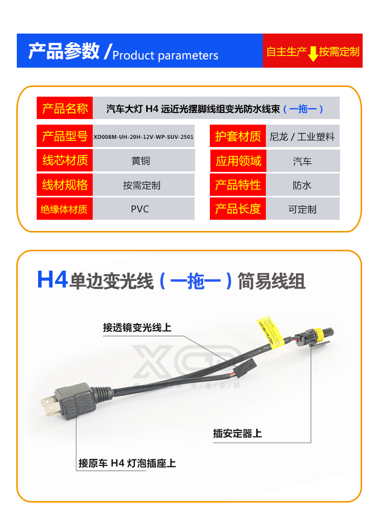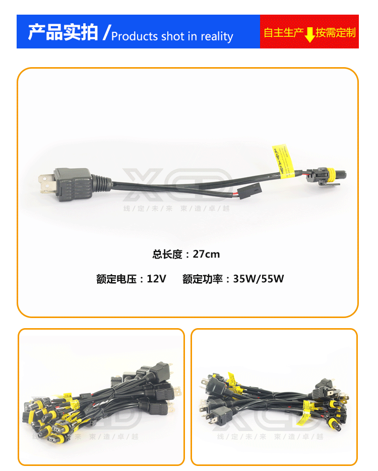 H4远近一体12V 摆角灯伸缩灯线组 HID氙气灯线组一拖一