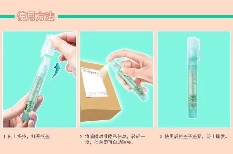 Жидкость для коррекции термобумаги, спрей для быстрого устранения информации, информация о конфиденциальности, покрывающая бесследную экспресс-доставку, 3 секунды, быстрое потребление, бесследное