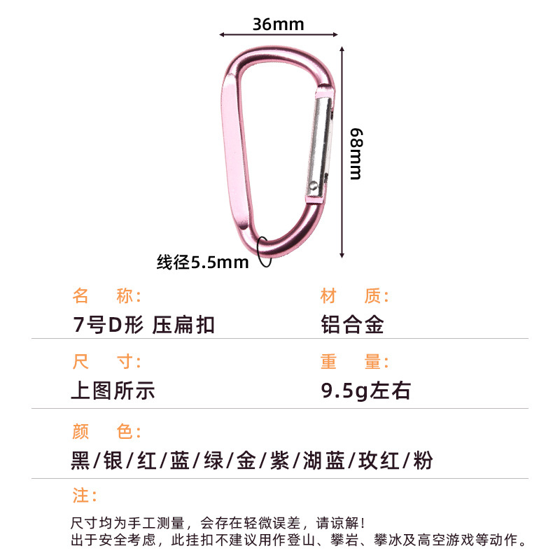 Уплощенный карабин № 7 D-образной формы, пружинная пряжка, аксессуары для кемпинга на открытом воздухе, утолщенный рюкзак, 10-цветный брелок с крючком, оптовая продажа