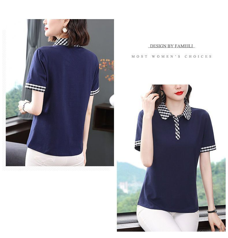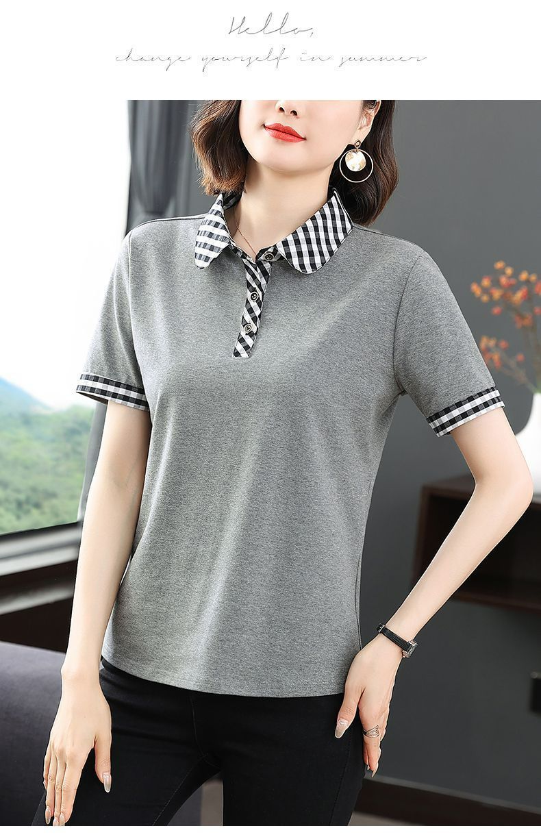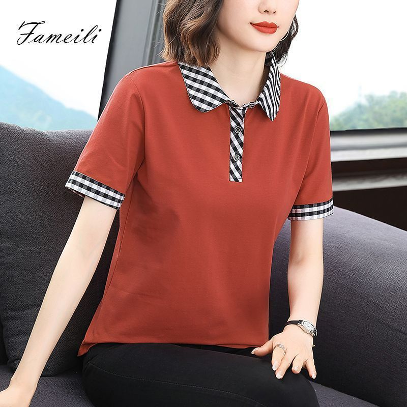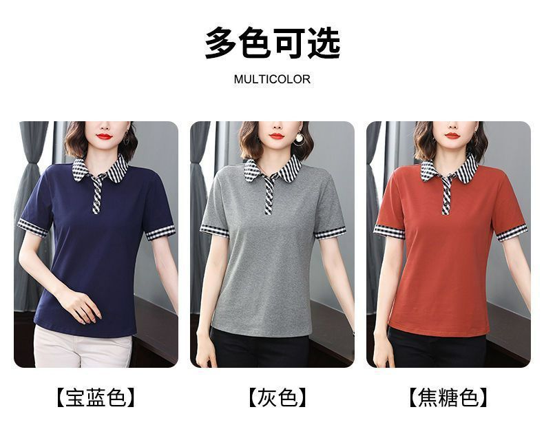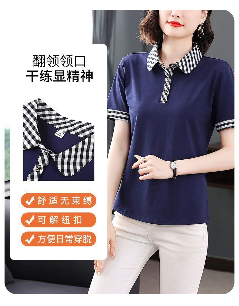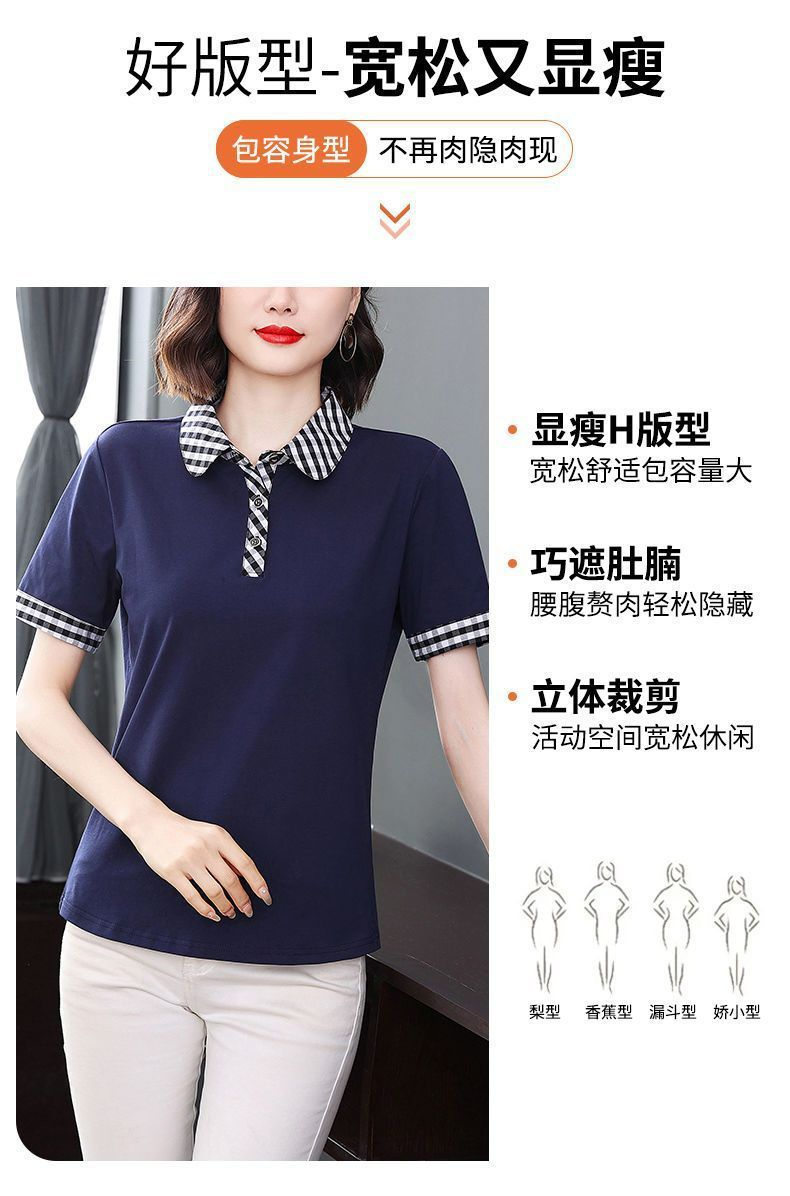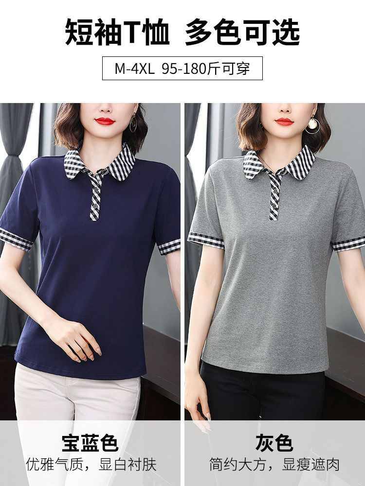 Мама с лацканом с коротким рукавом футболка женская 2025 лето новый polo среднего возраста спортивный повседневный топ большой размер оптом
