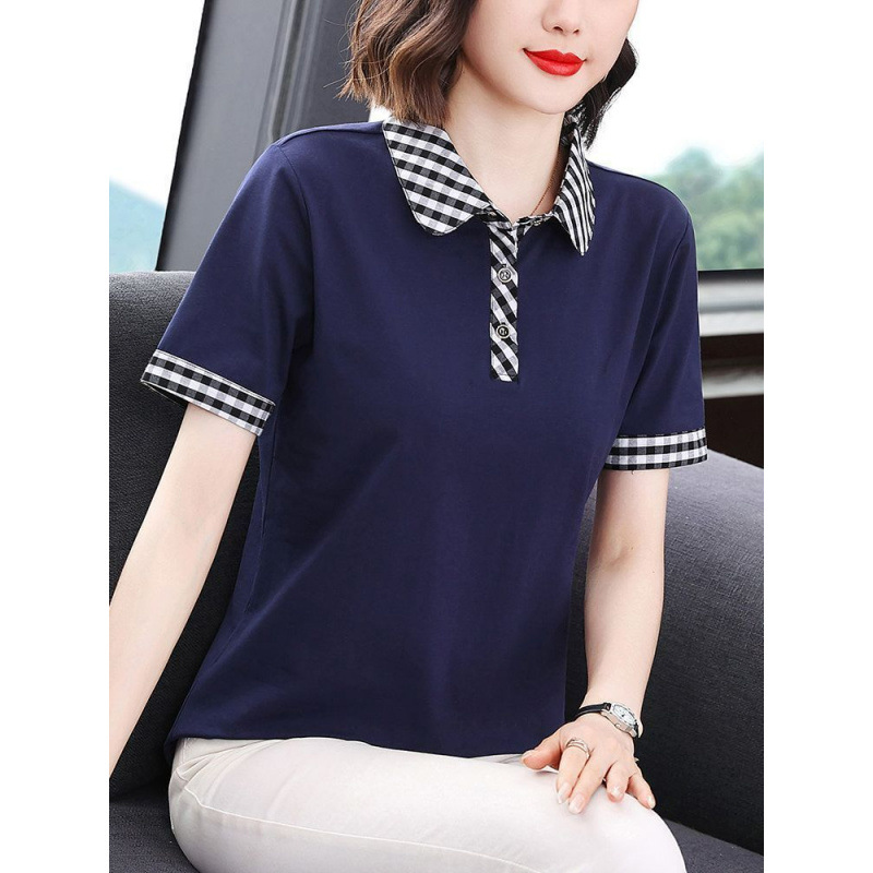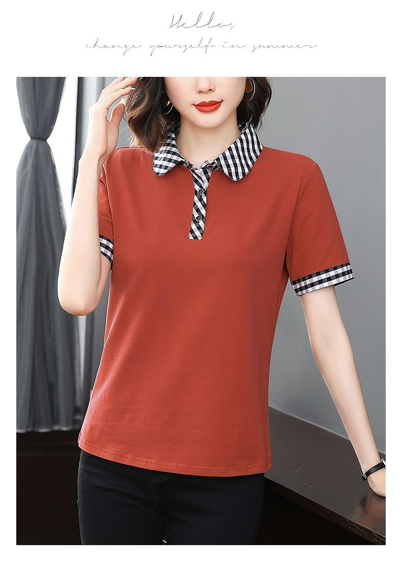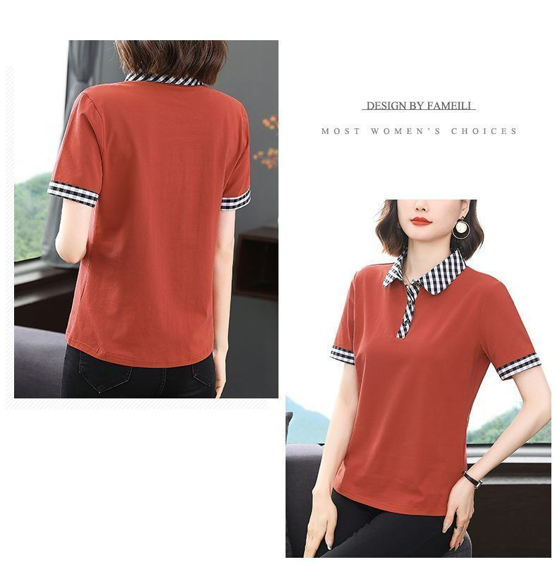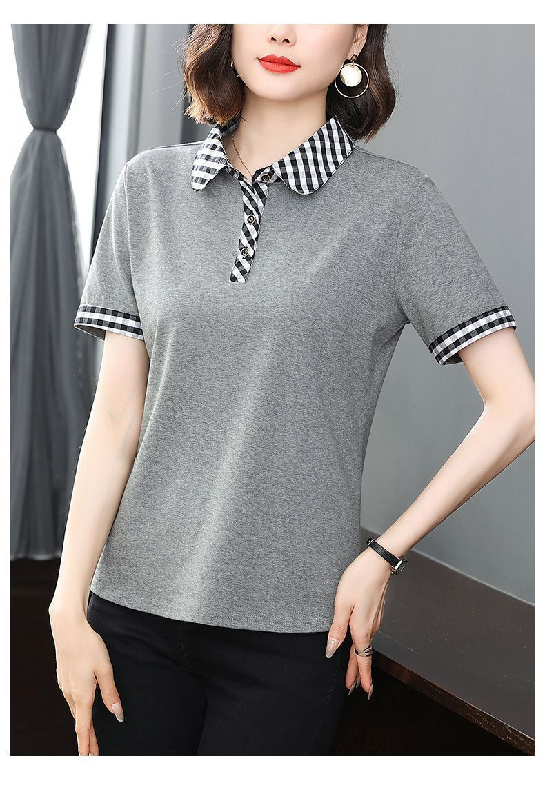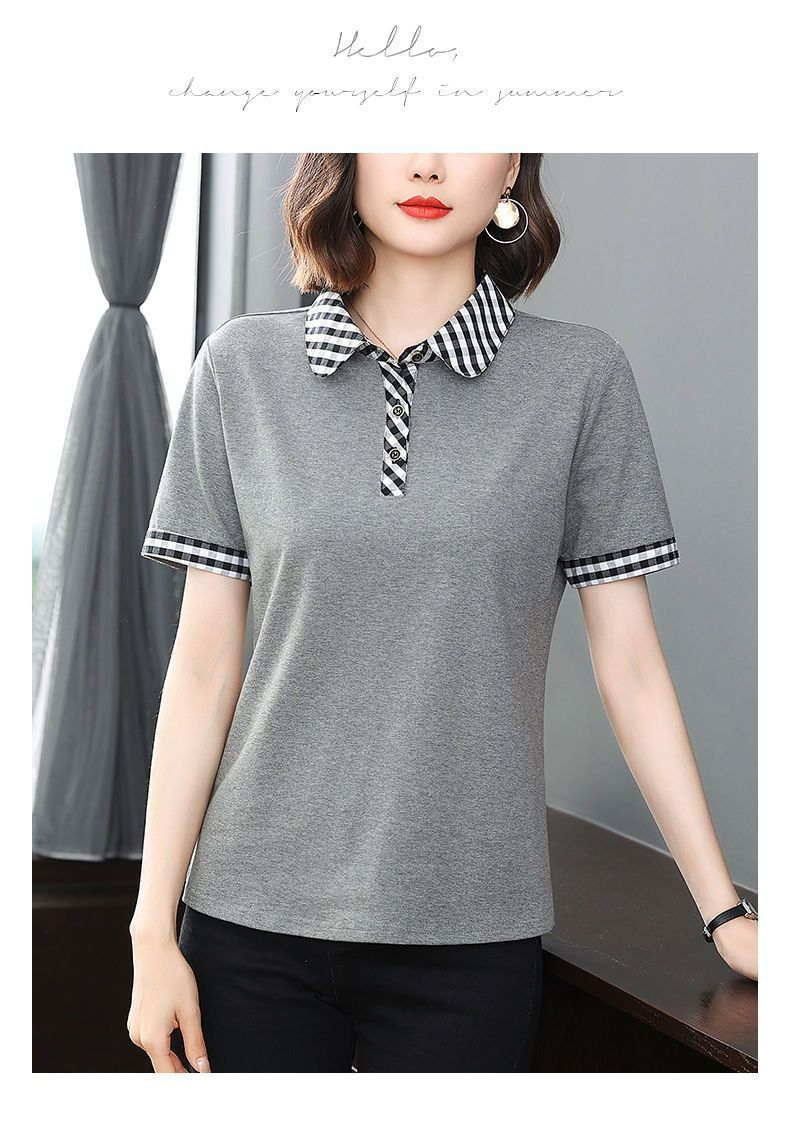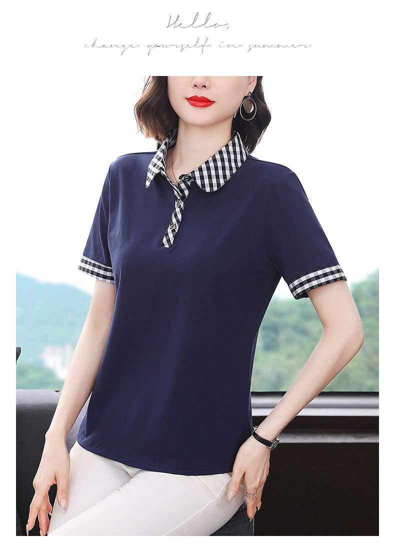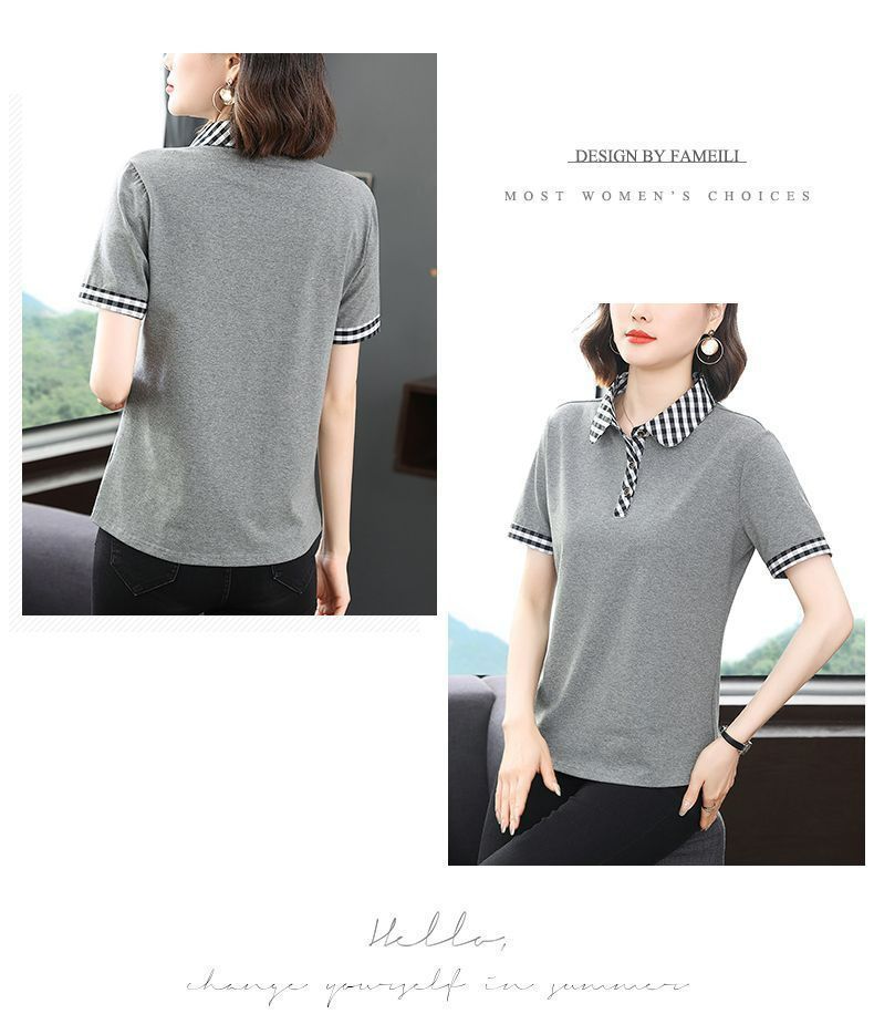Мама с лацканом с коротким рукавом футболка женская 2025 лето новый polo среднего возраста спортивный повседневный топ большой размер оптом