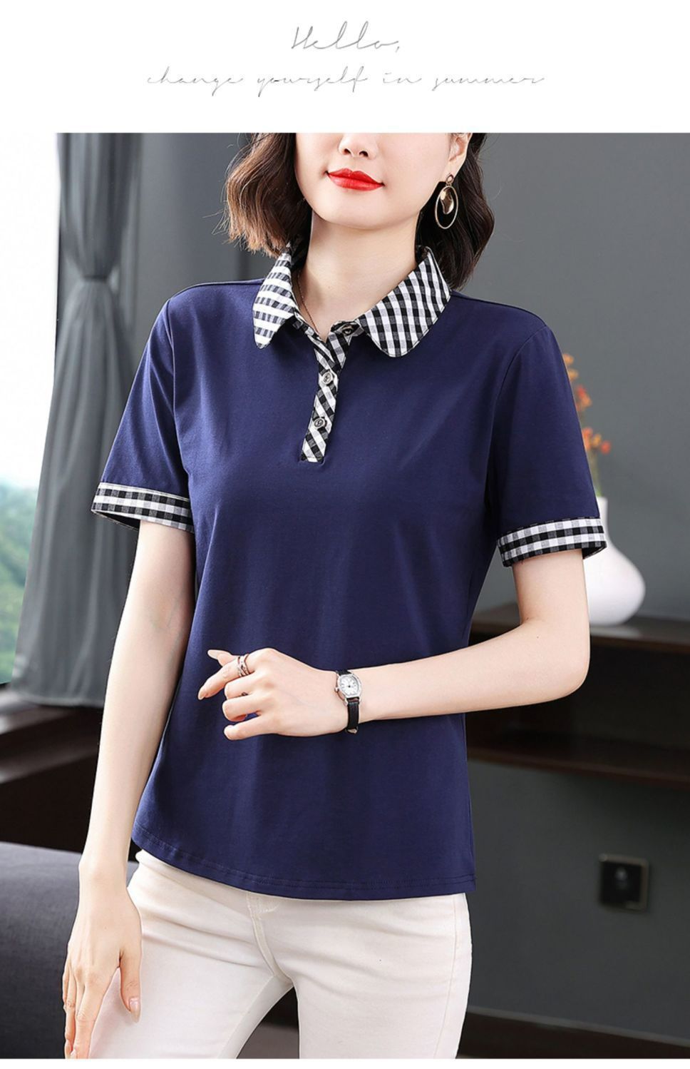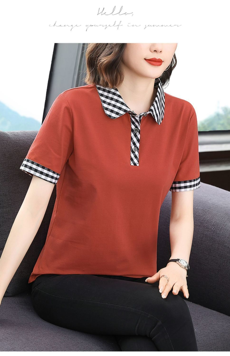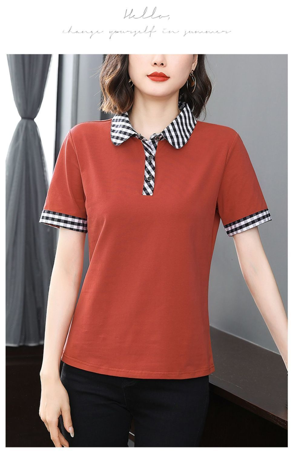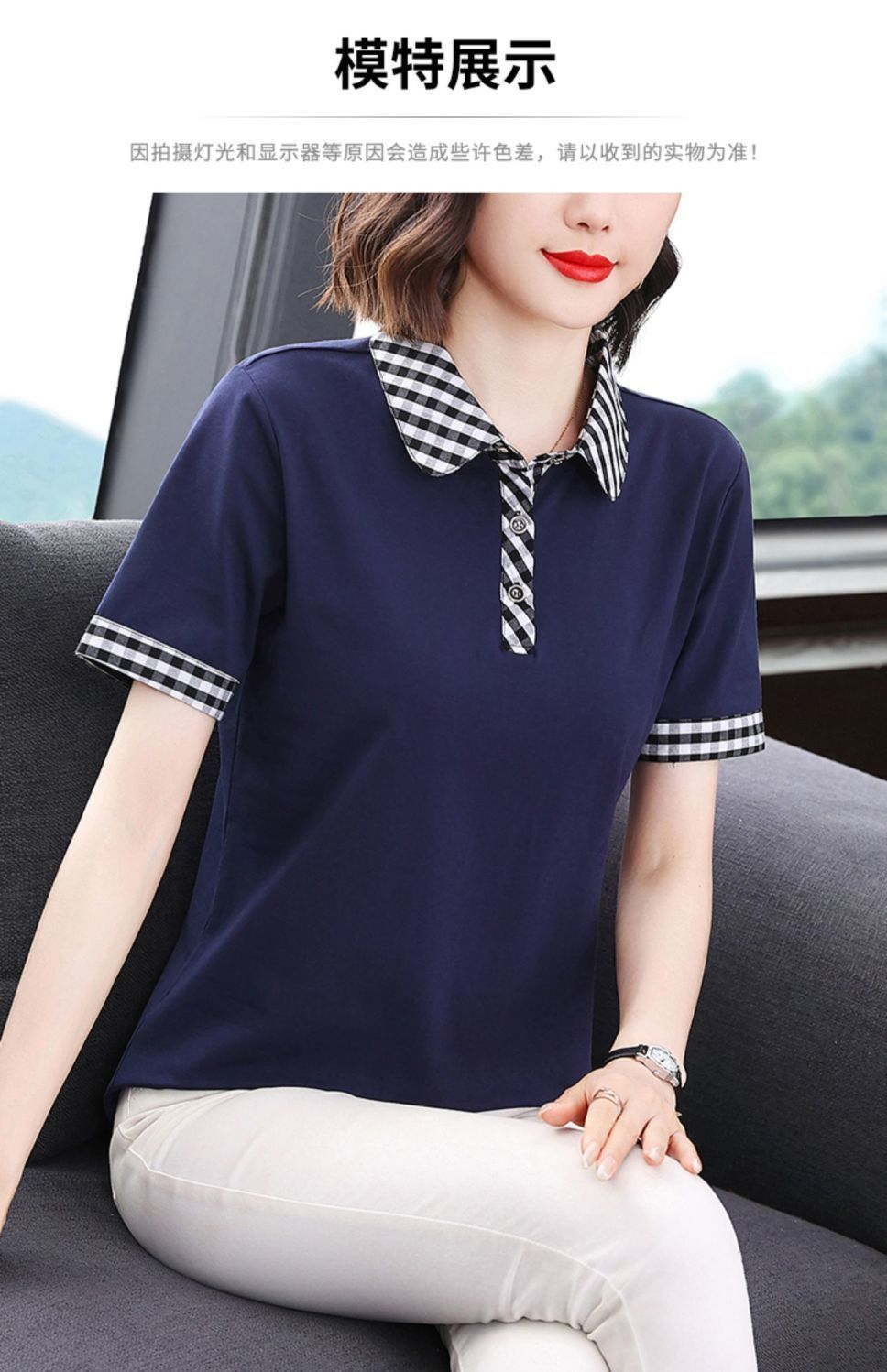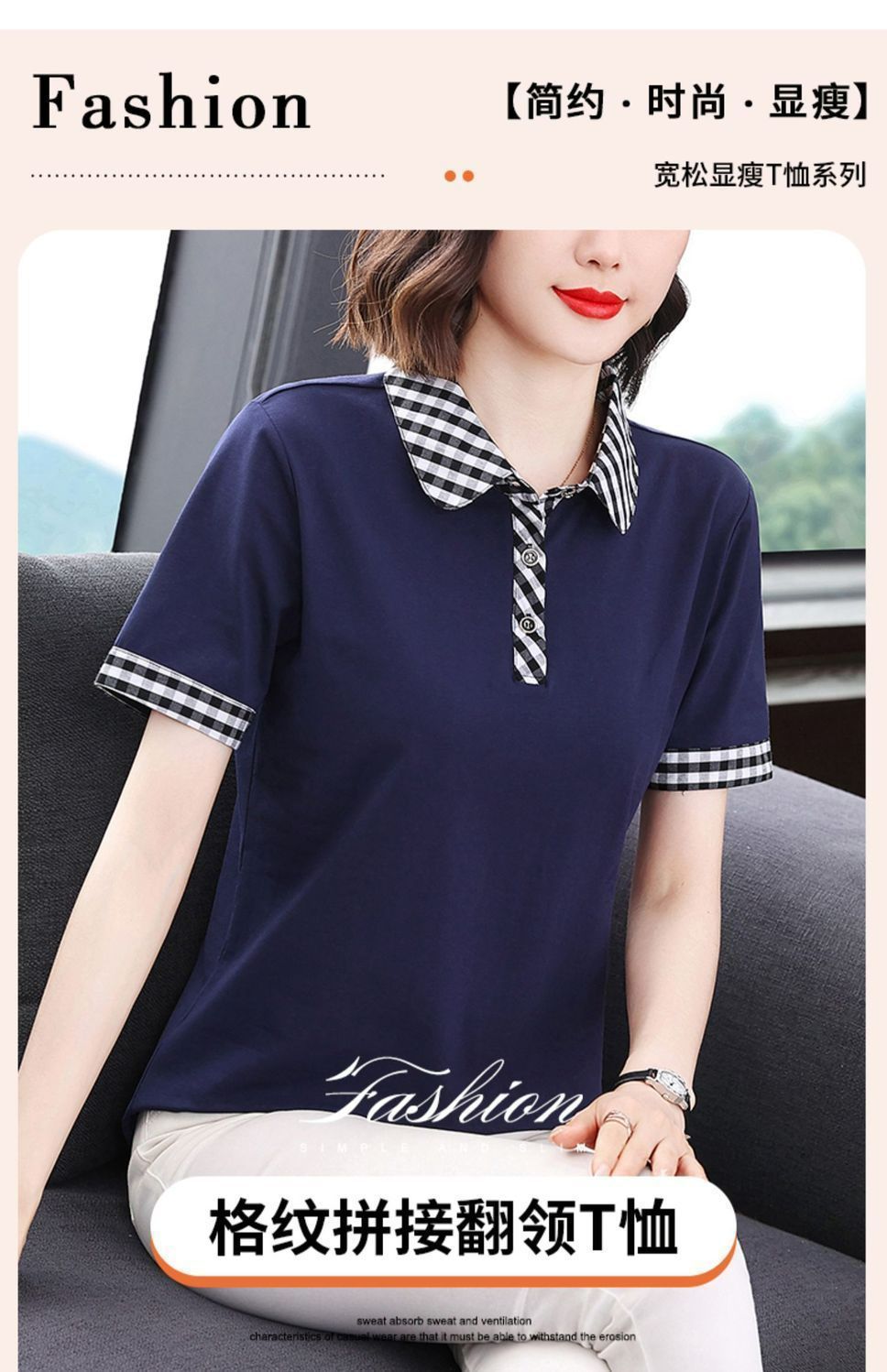 Мама с лацканом с коротким рукавом футболка женская 2025 лето новый polo среднего возраста спортивный повседневный топ большой размер оптом