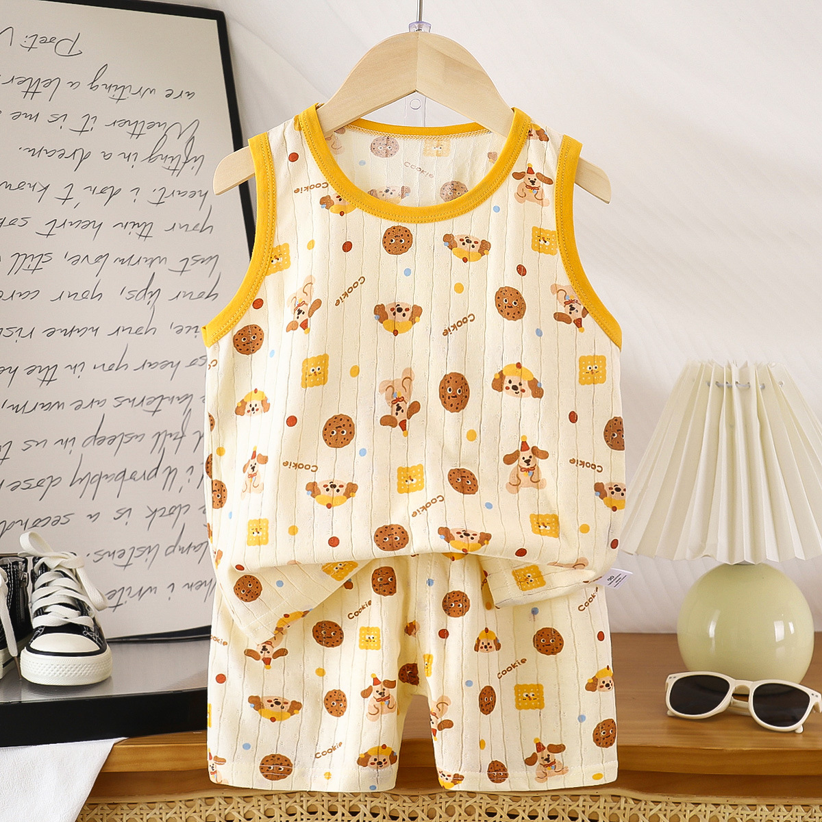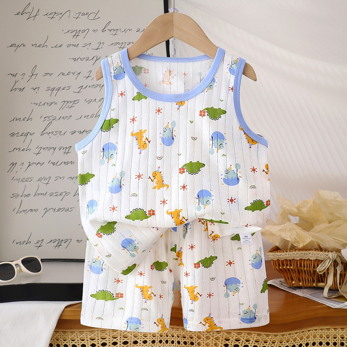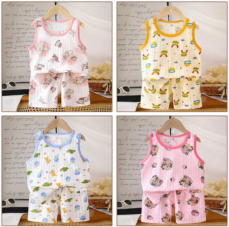 2025 корейский детский жилет набор новый мальчик и мальчик ребенок мультфильм тонкий без рукавов шорты набор прилив