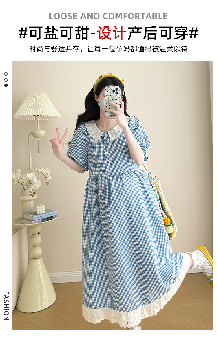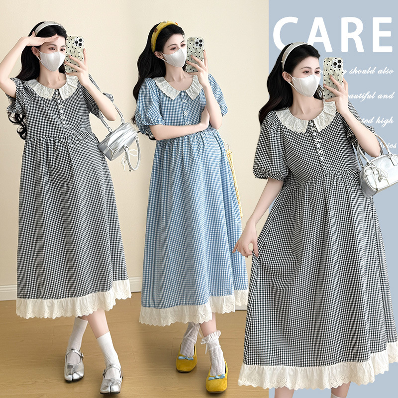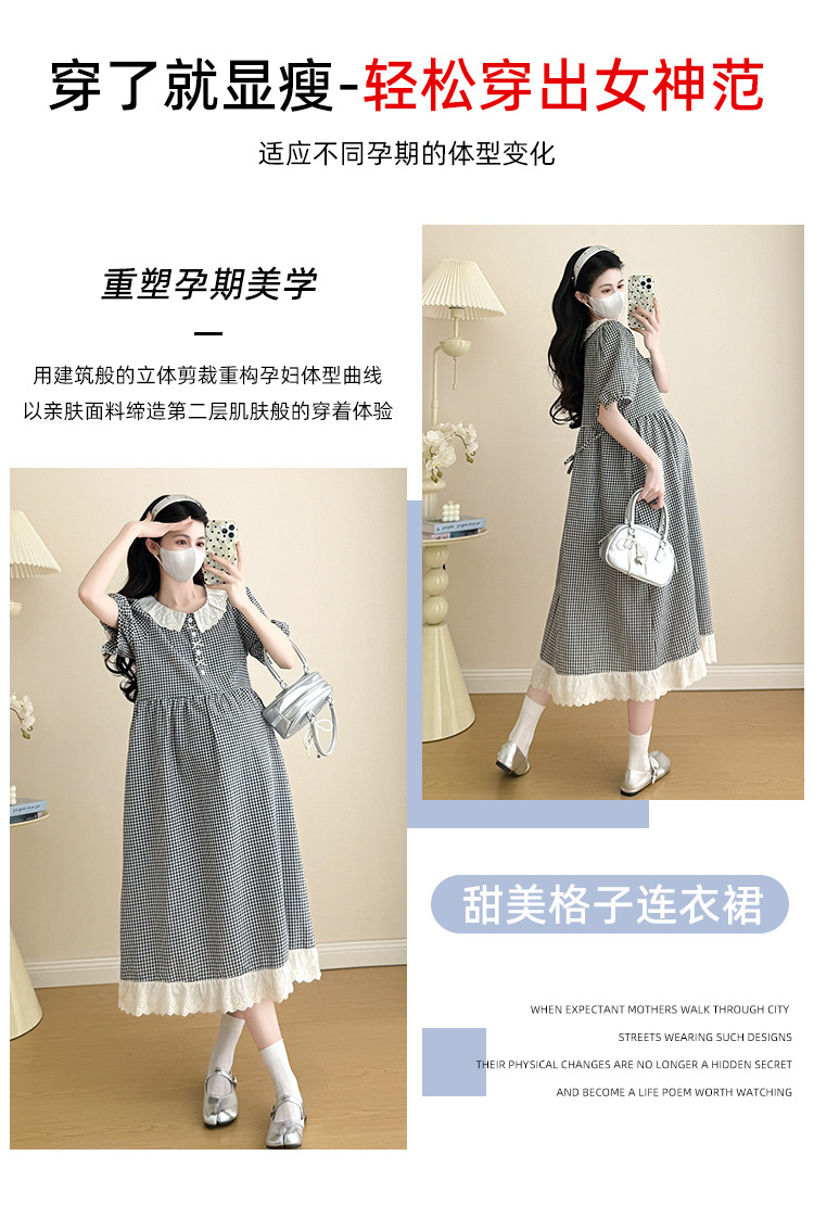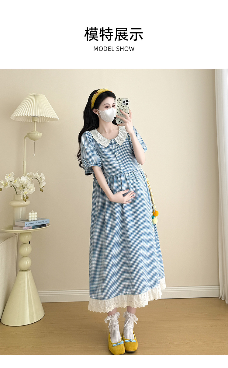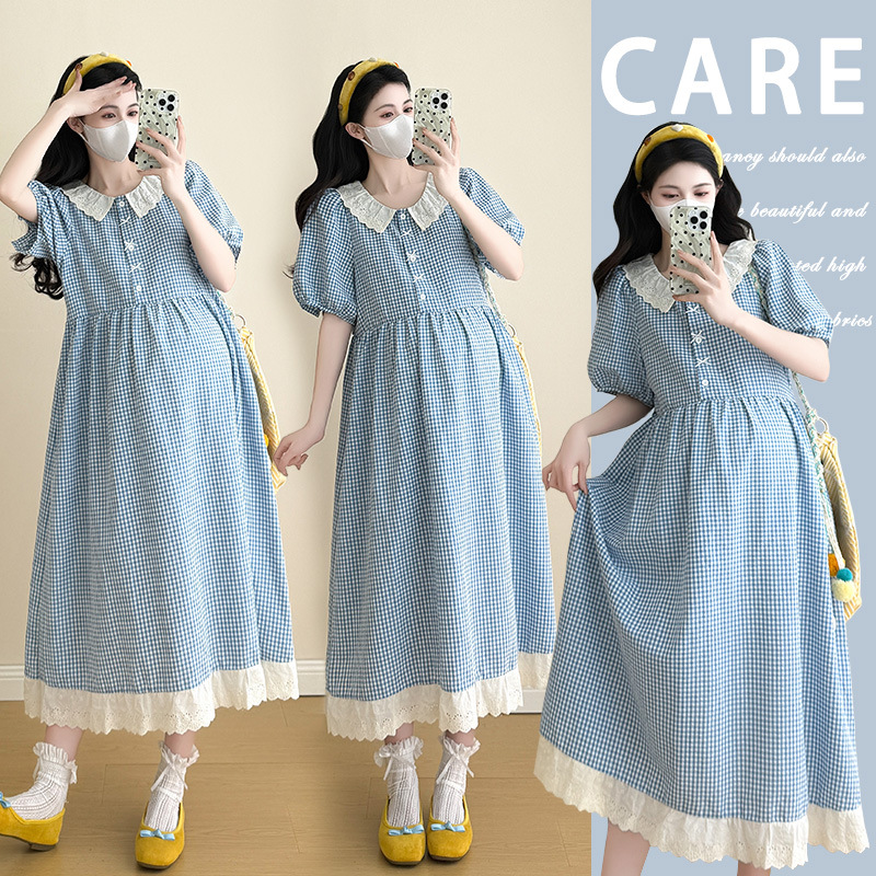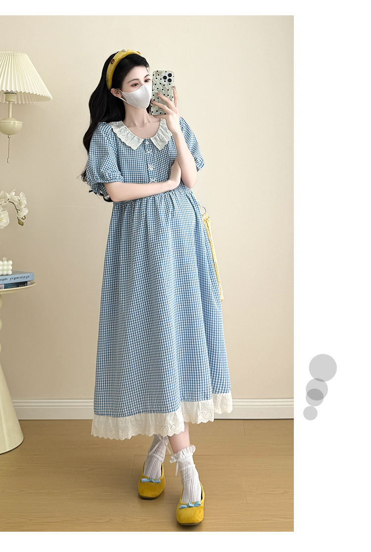 Фото нового летнего платья для беременных в клетку с кружевными вставками 2025 года