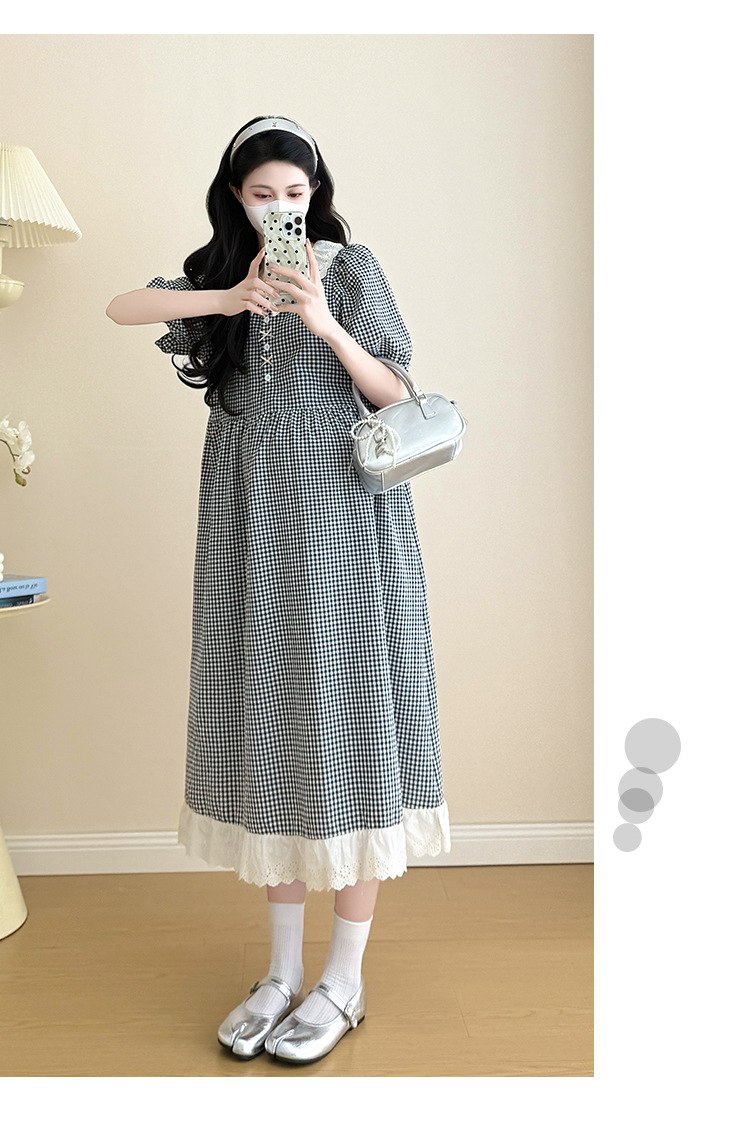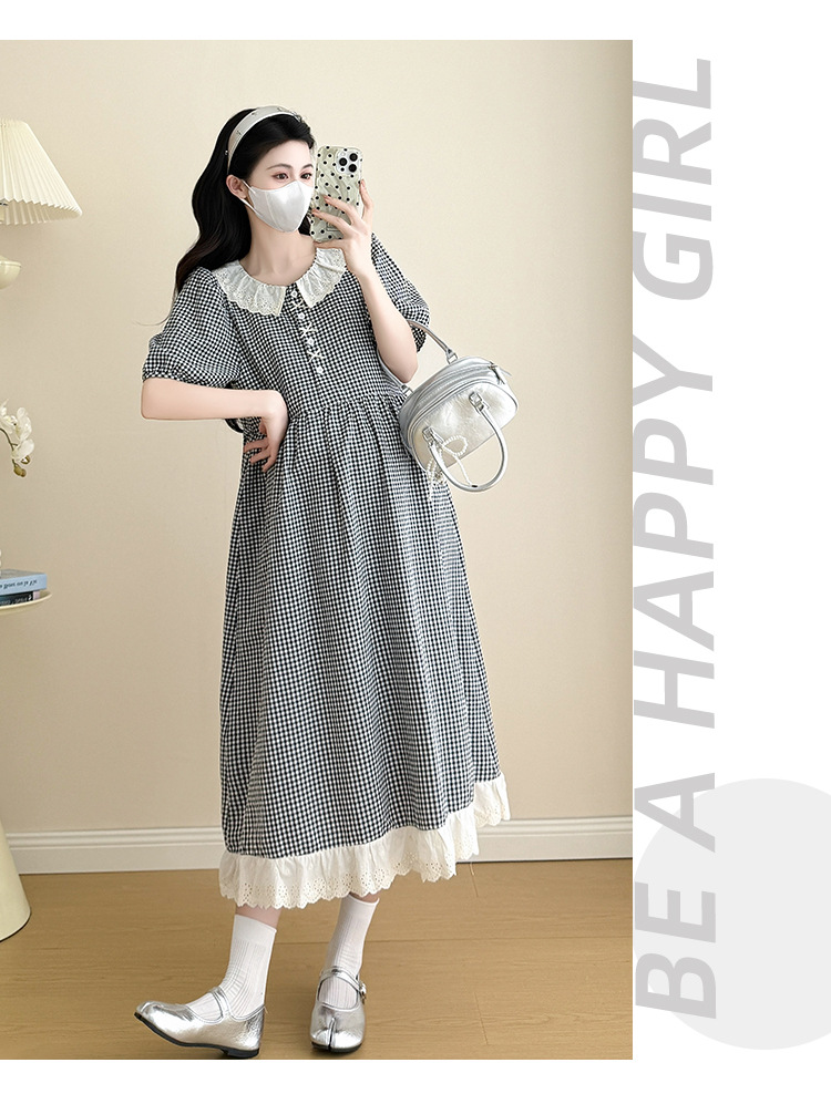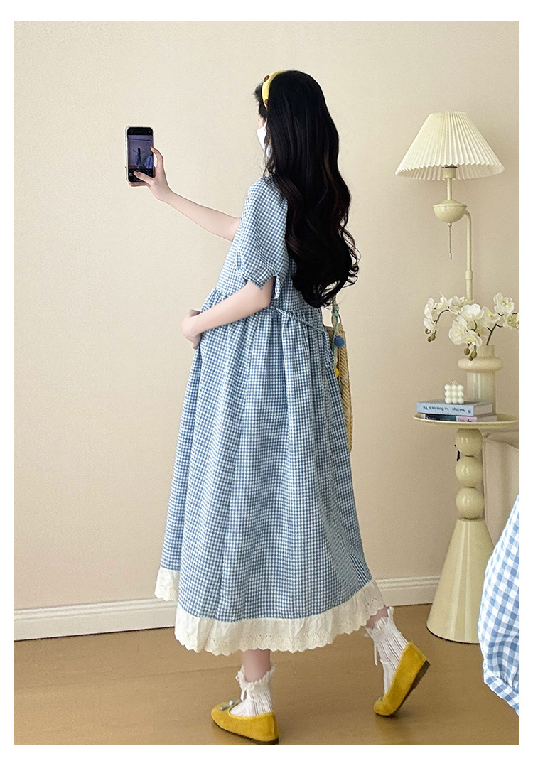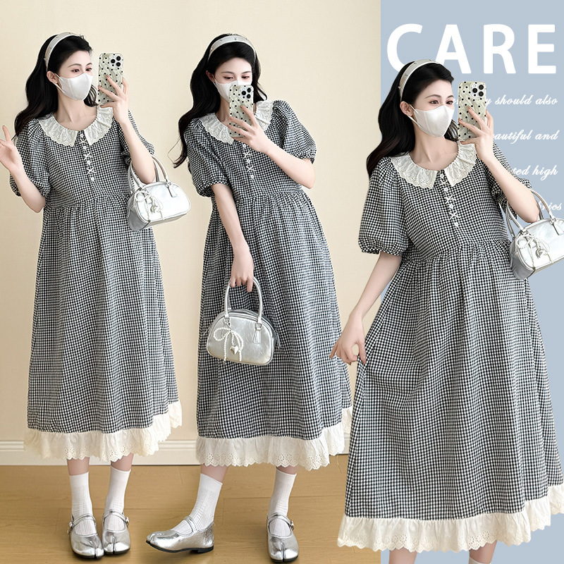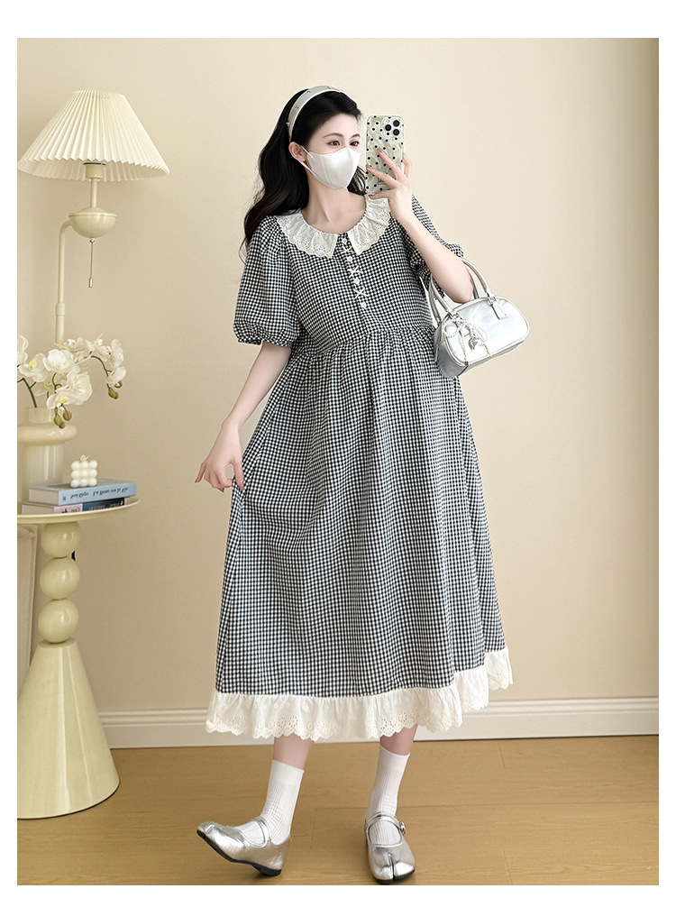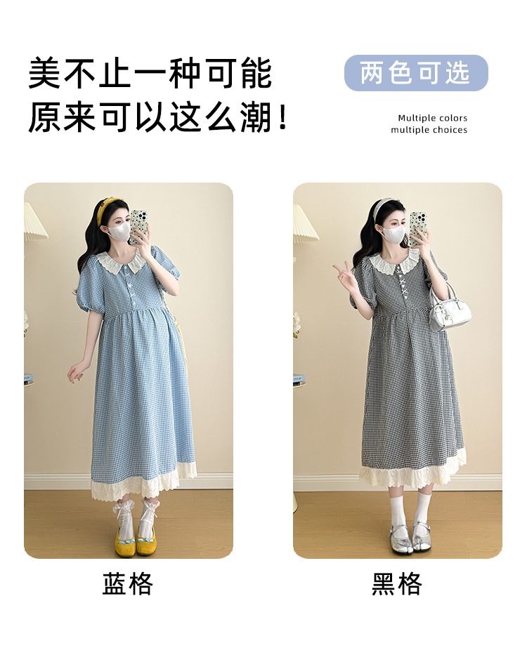 Фото нового летнего платья для беременных в клетку с кружевными вставками 2025 года