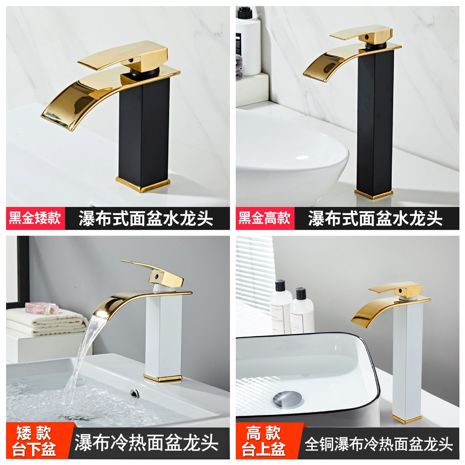 Трансграничный черный водопад, тазовый кран, горячая и холодная ванная туалет