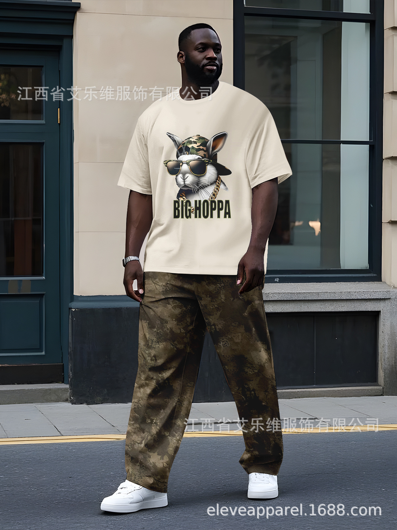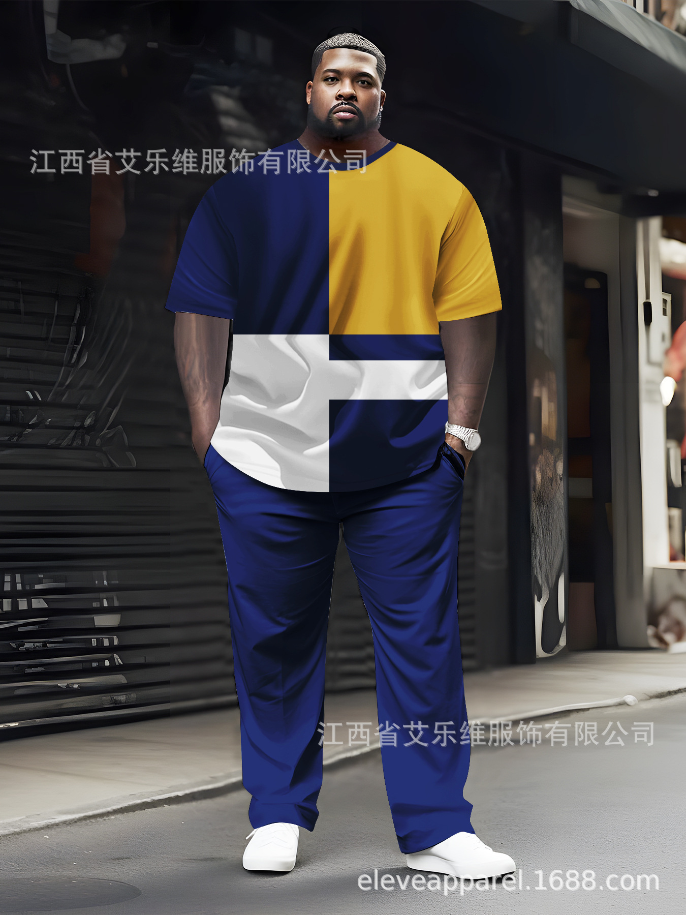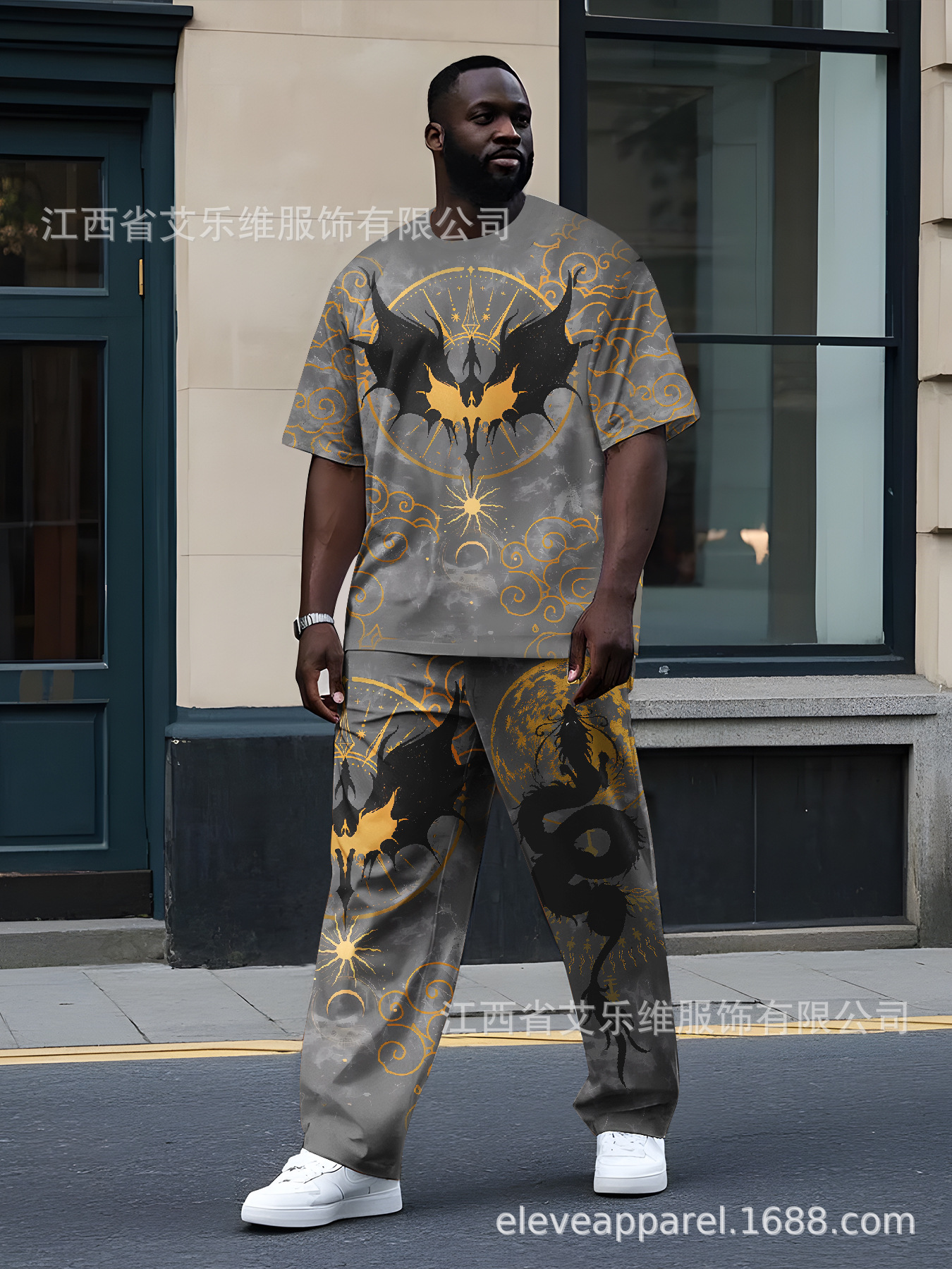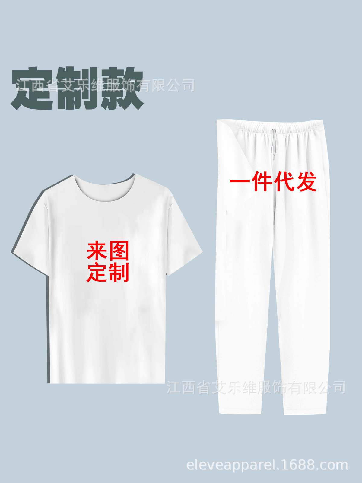 Мужской комплект: футболка с круглым вырезом и короткими рукавами и брюки, с возможностью индивидуализации (изображения, образцы, размеры), трансграничная электронная коммерция, печать на заказ.