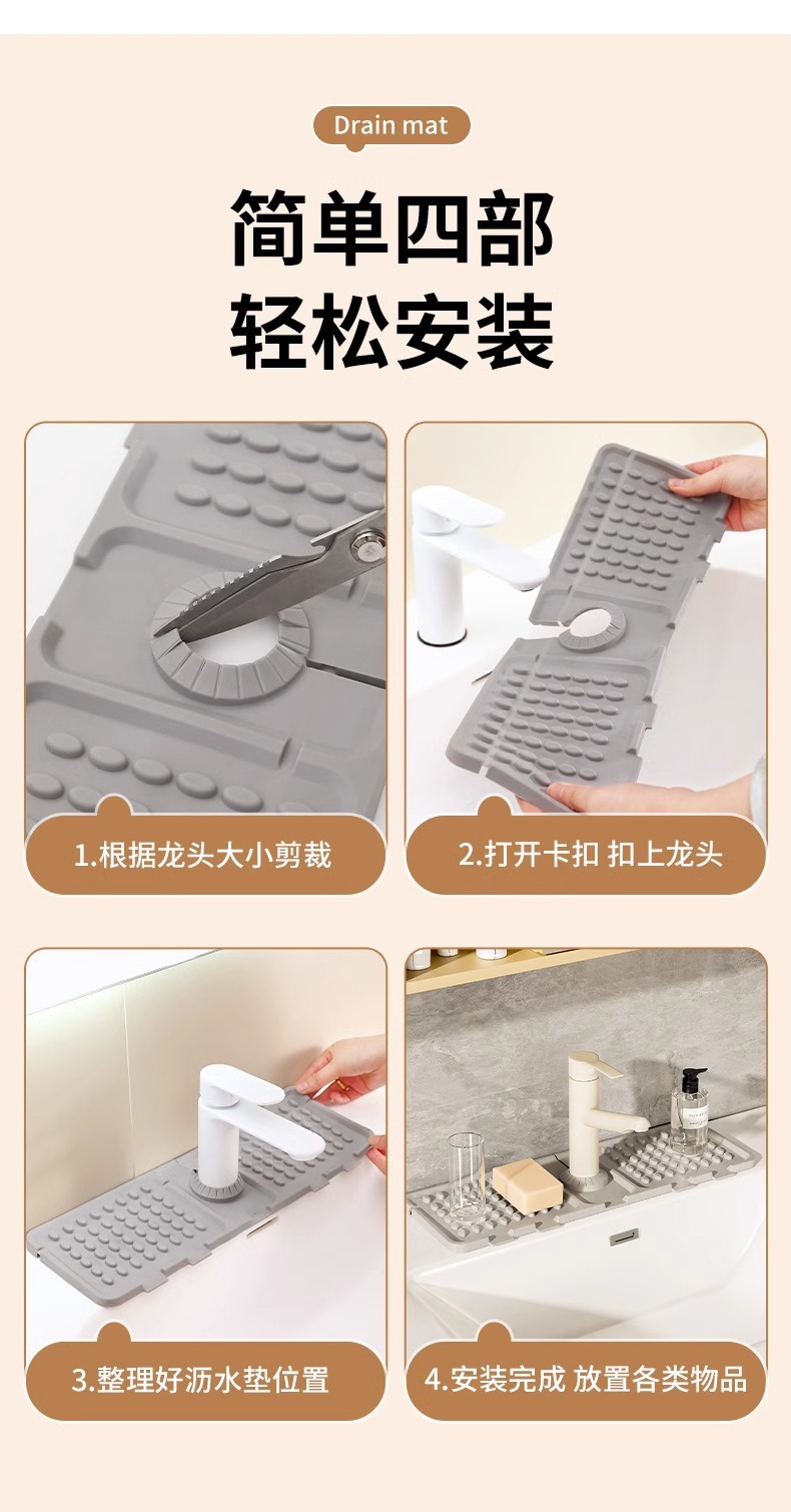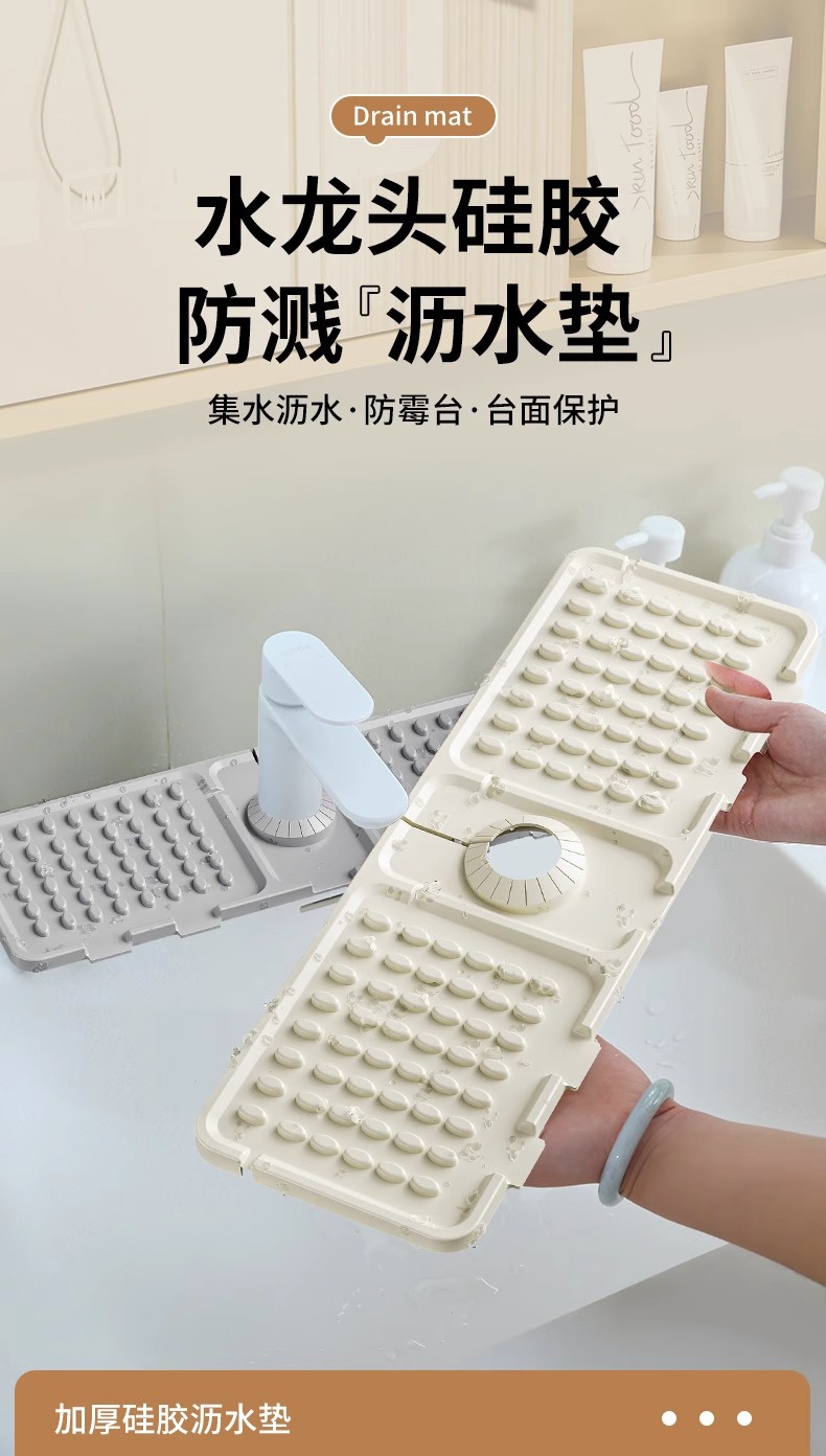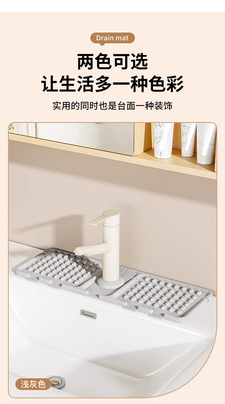 Сливной коврик из серого силикона [складной]; Бежевая силиконовая сливная подушка [складная]