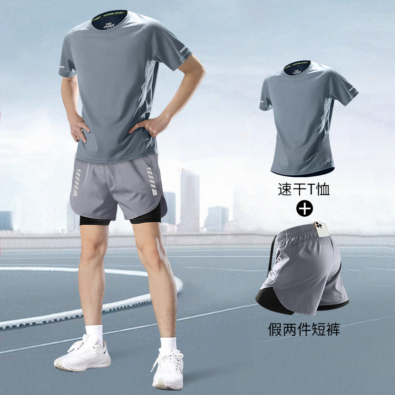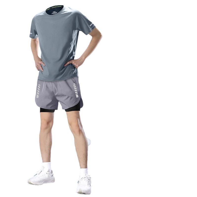 Фитнес-одежда Мужской бег Спортивный набор Летний ледяной шелк Быстременные шорты с короткими рукавами Марафон Профессиональное учебное снаряжение