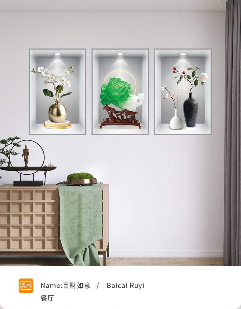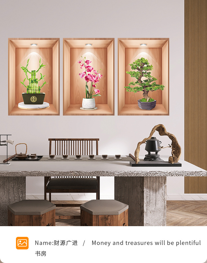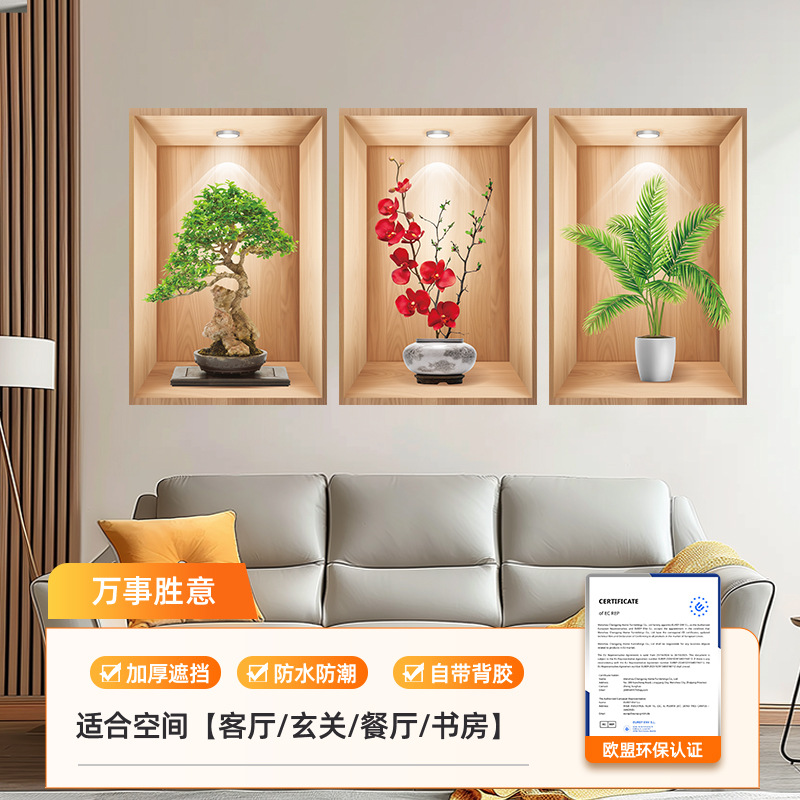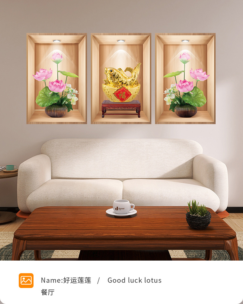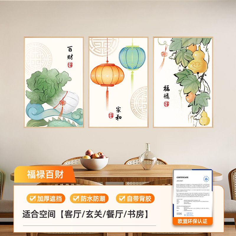 Новая декоративная самоклеящаяся настенная пленка в китайском стиле для гостиной, имитирующая картины-триптихи, для обновления и украшения стен, приносящая удачу