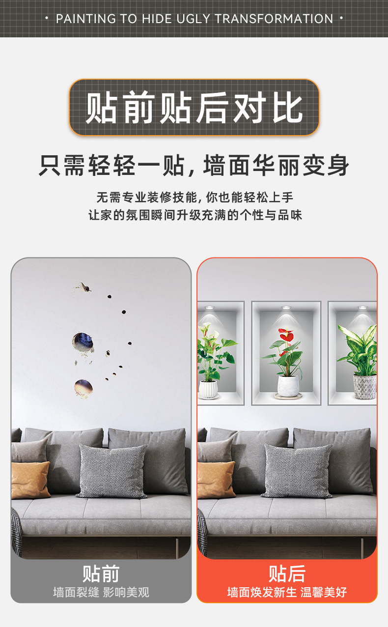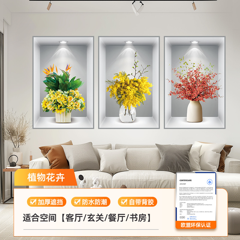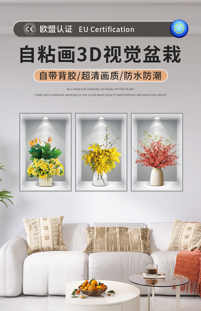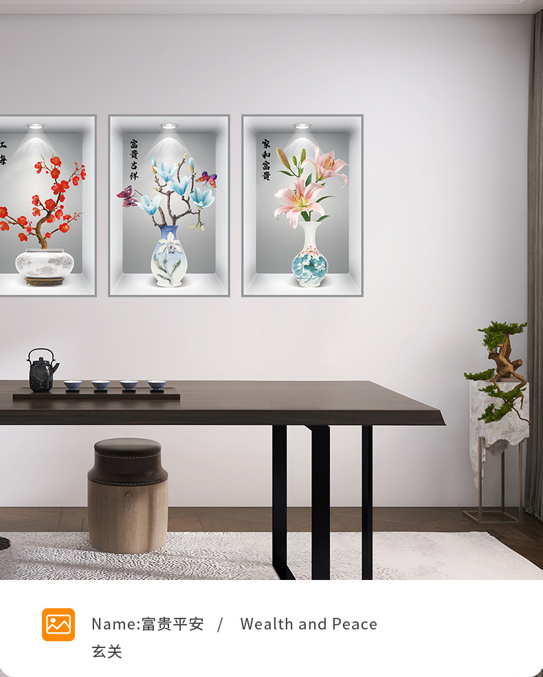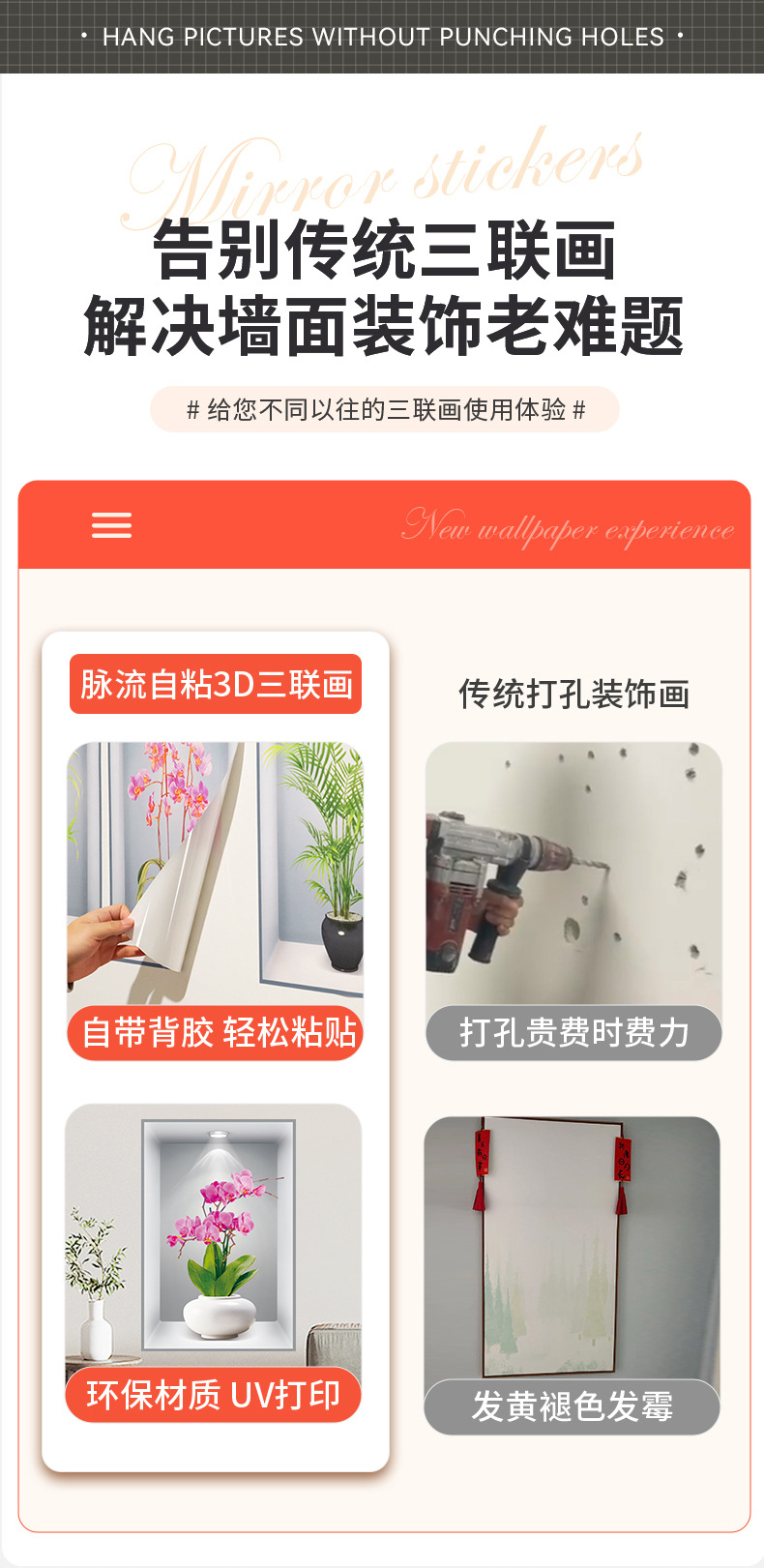 Новая декоративная самоклеящаяся настенная пленка в китайском стиле для гостиной, имитирующая картины-триптихи, для обновления и украшения стен, приносящая удачу