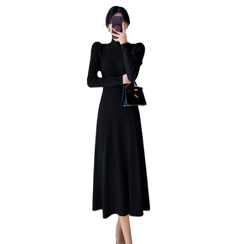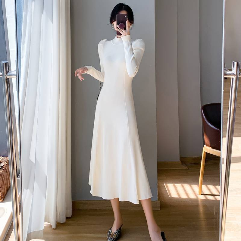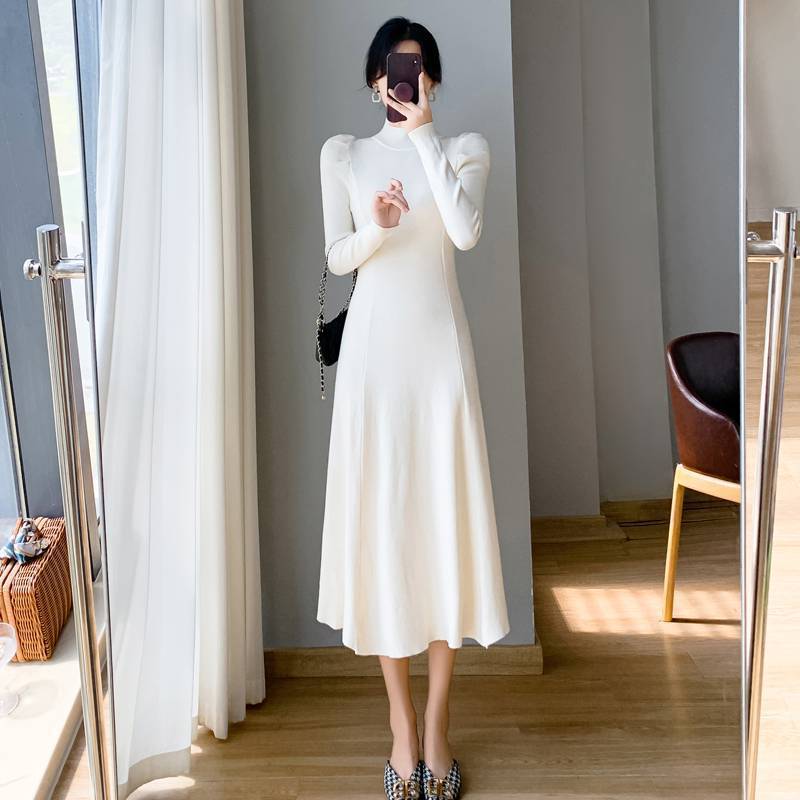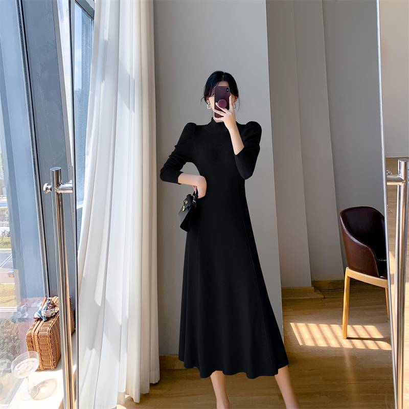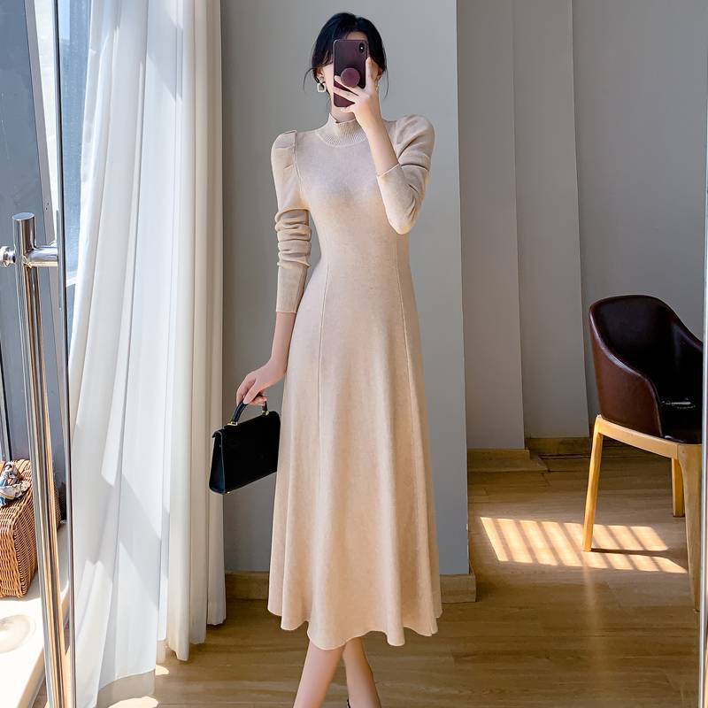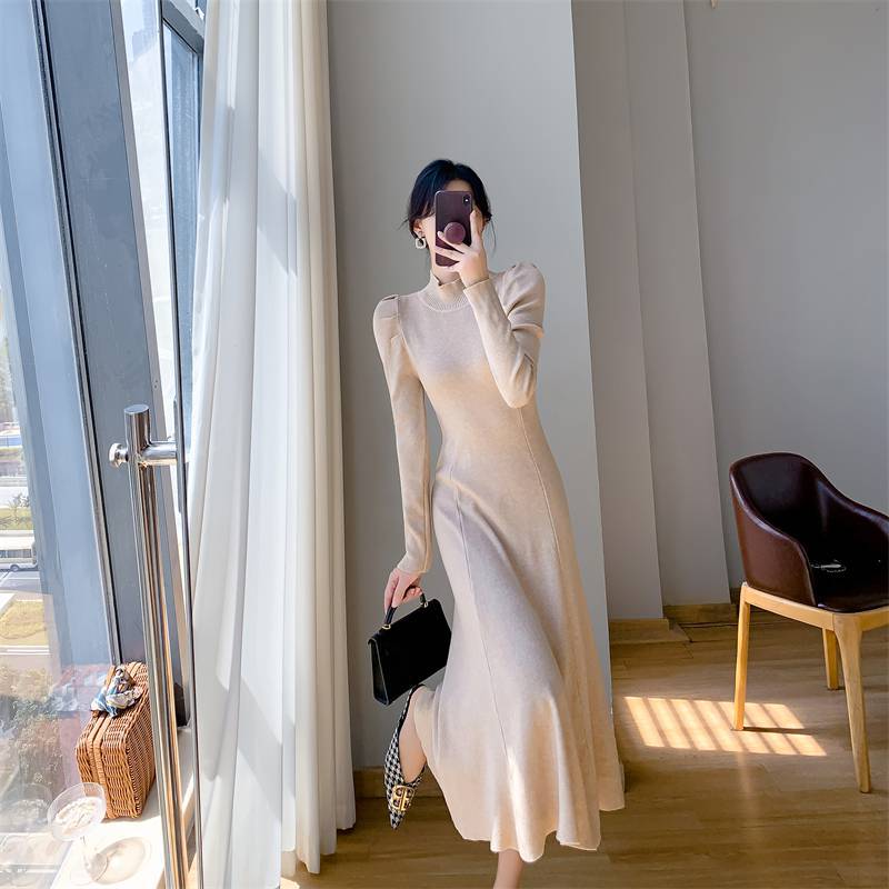 Настоящее фото женского трикотажного платья в французском стиле с пальто на осень и зиму, новая элегантная длинная юбка высокого класса.