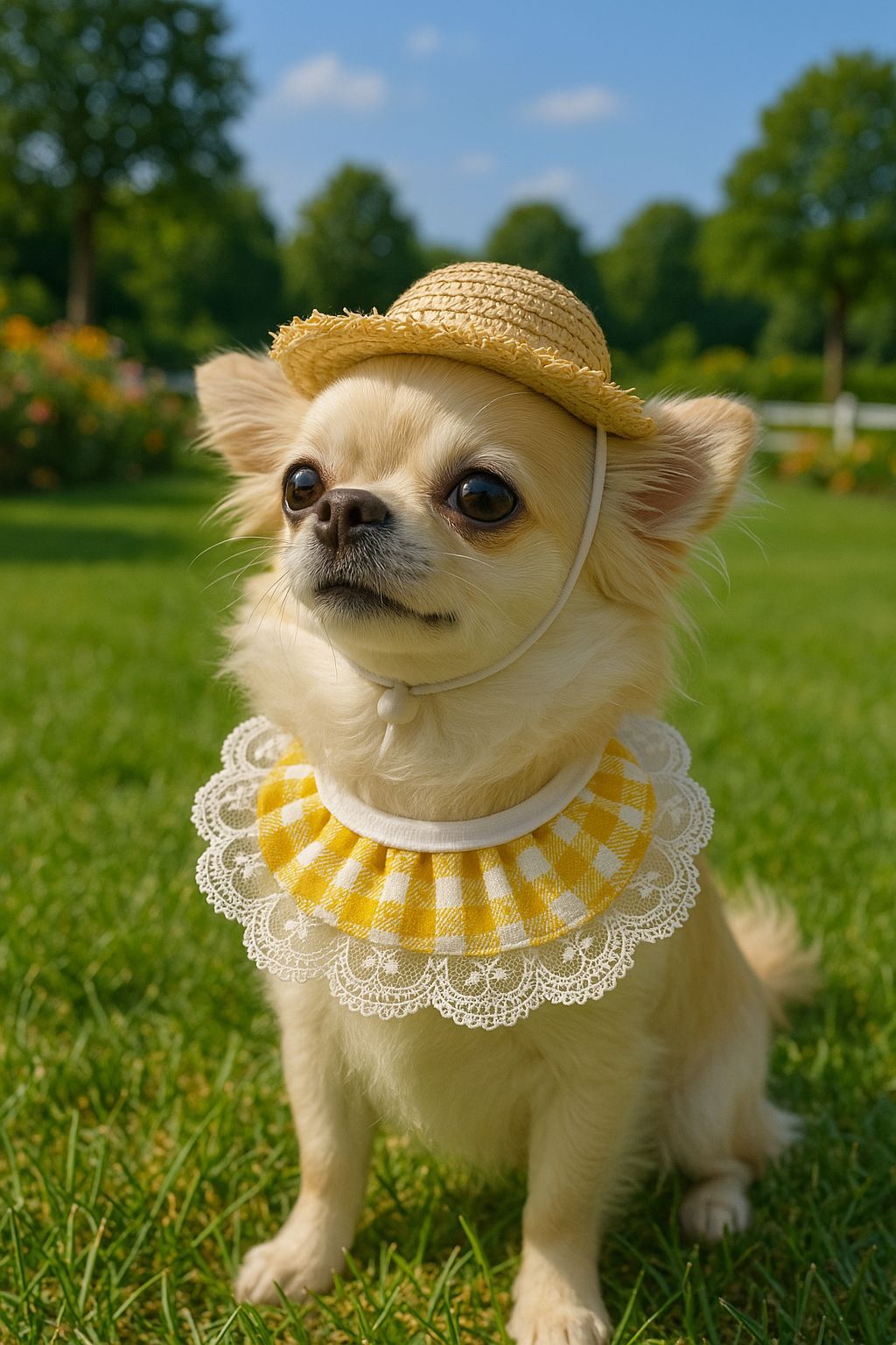 Соломенная шляпа + желтое кружевное полотенце со слюной