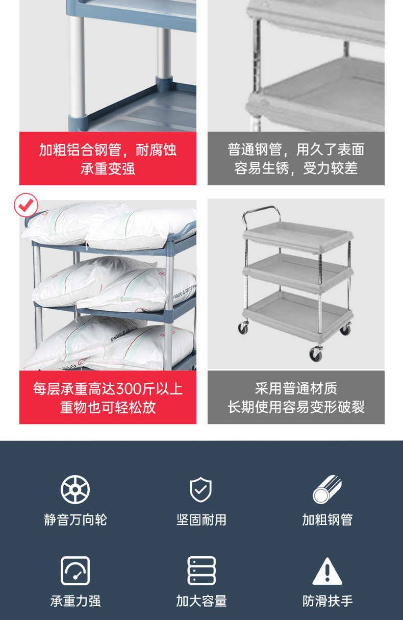 Утолщенная большая трехслойная пластиковая обеденная тележка, ручная тележка, тележка для мисок, многофункциональная тележка для коммерческого гостиничного ресторана