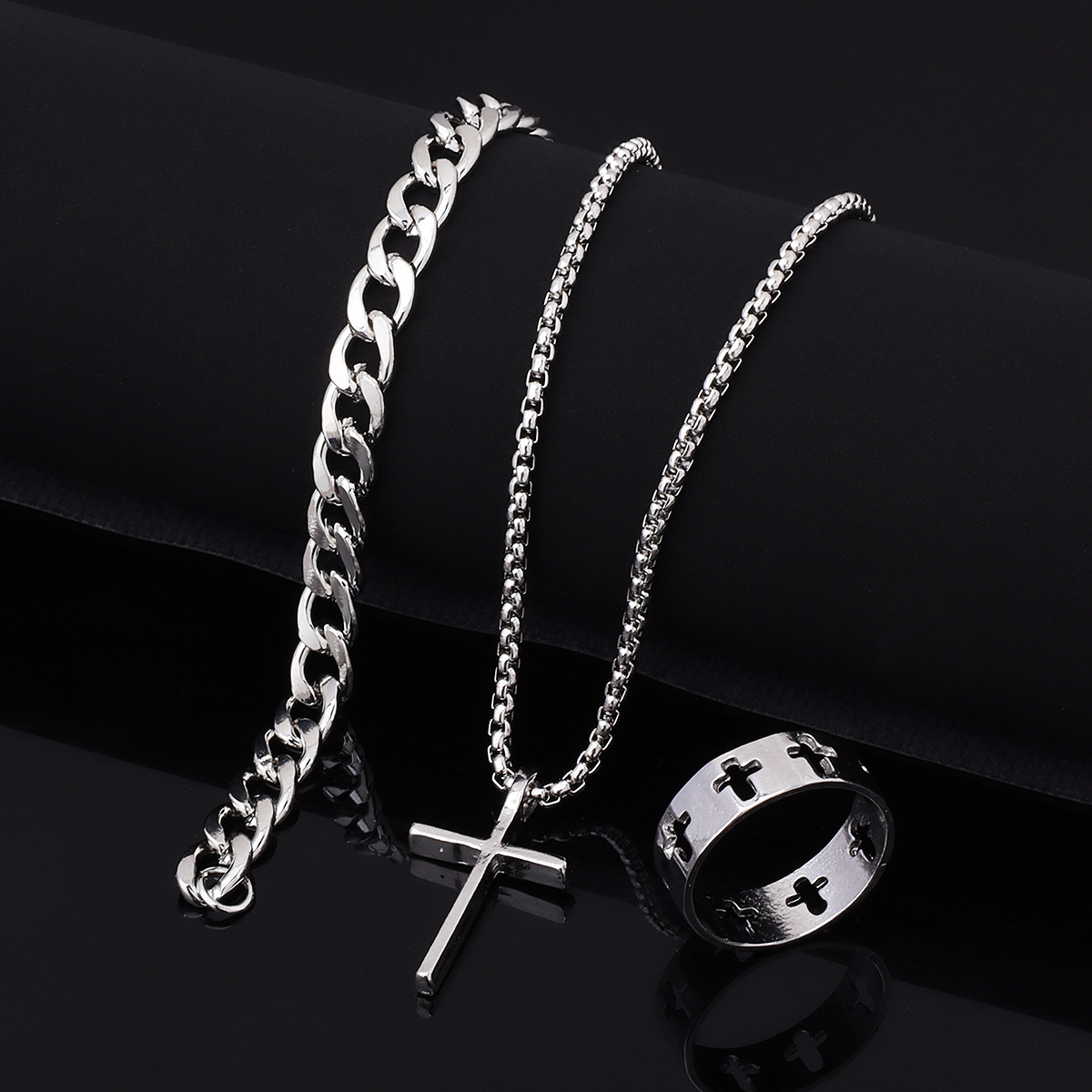 Европейский и американский трансграничный популярный стиль, минималистичный универсальный крест, кулон, кольцо, браслет, ожерелье, комплект ювелирных изделий