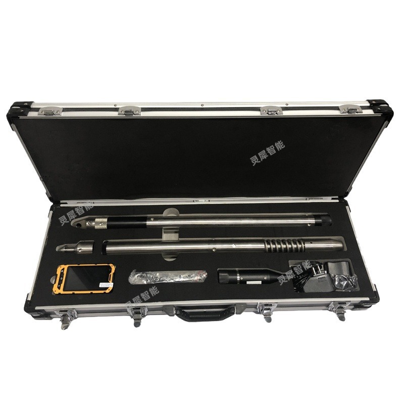 KXP-2X无线数字罗盘测斜仪由两部分组成:探棒和一个无线控制仪,两个设备间通过无线方式进行通讯,无需使用线缆。探棒用来测量和采集钻孔的孔斜和方位数据,无线控制仪用来设置测量参数及查阅测量结果。通过无线控制仪完成测井时间的设置后,探棒根据预设的时间自动采集并保存数据,待测井完成后通过无线控制仪读取探棒内部的数据,即可在显示屏上直接读取测量结果。