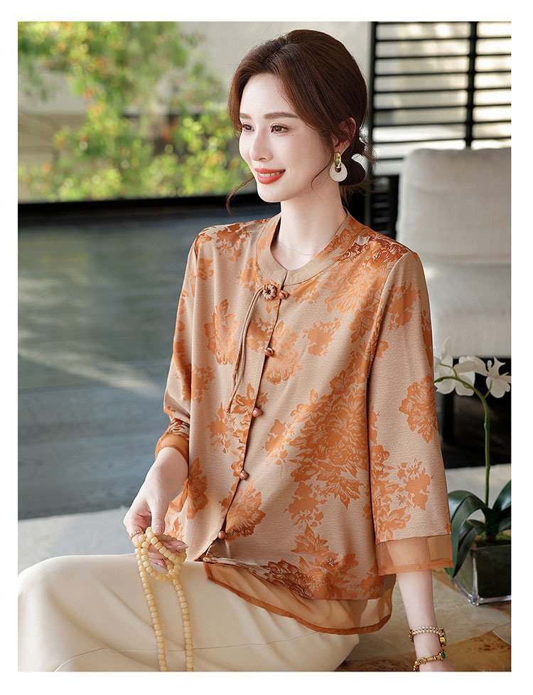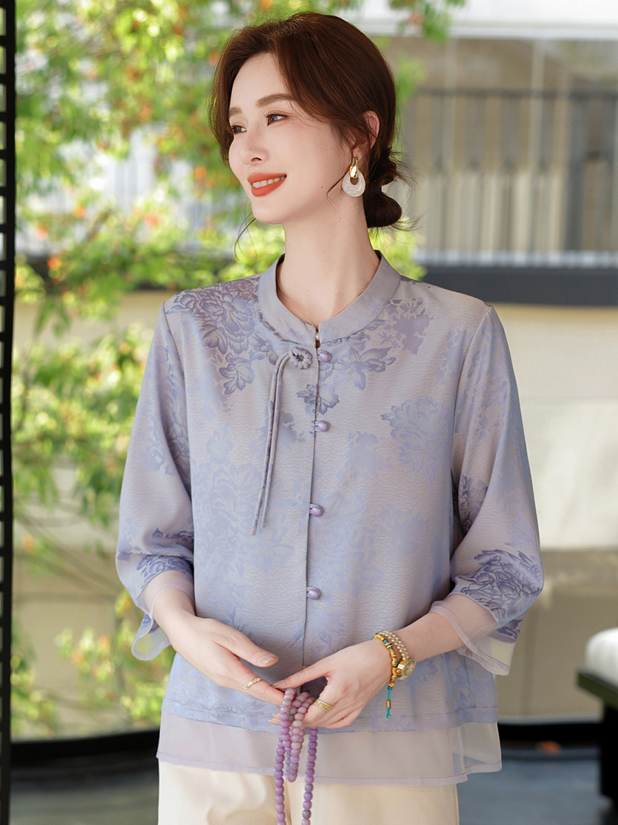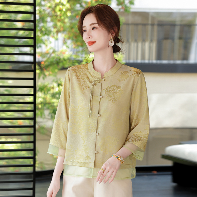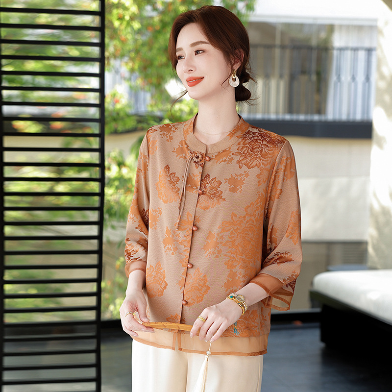 Новая китайская мама летняя рубашка с рукавами 2025 новая женская летняя футболка среднего и пожилого возраста