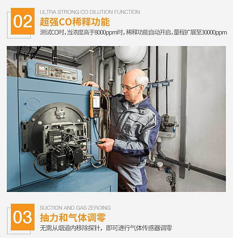 Анализатор эффективности сжигания дымовых газов Testo 300, интеллектуальная сенсорная технология, измерение системы отопления