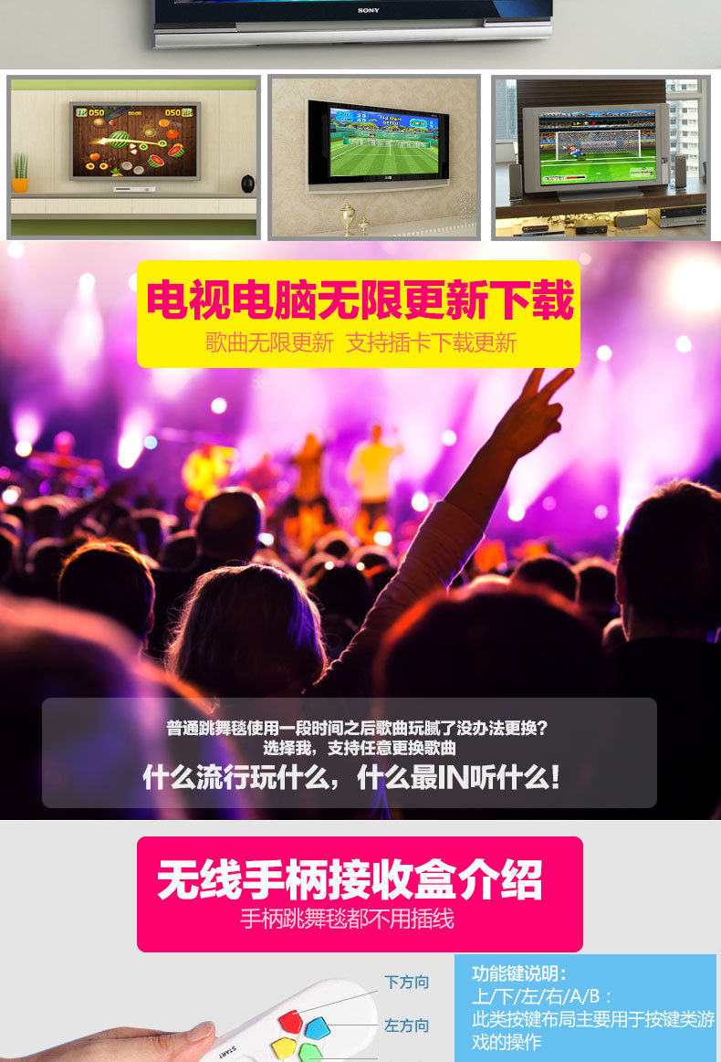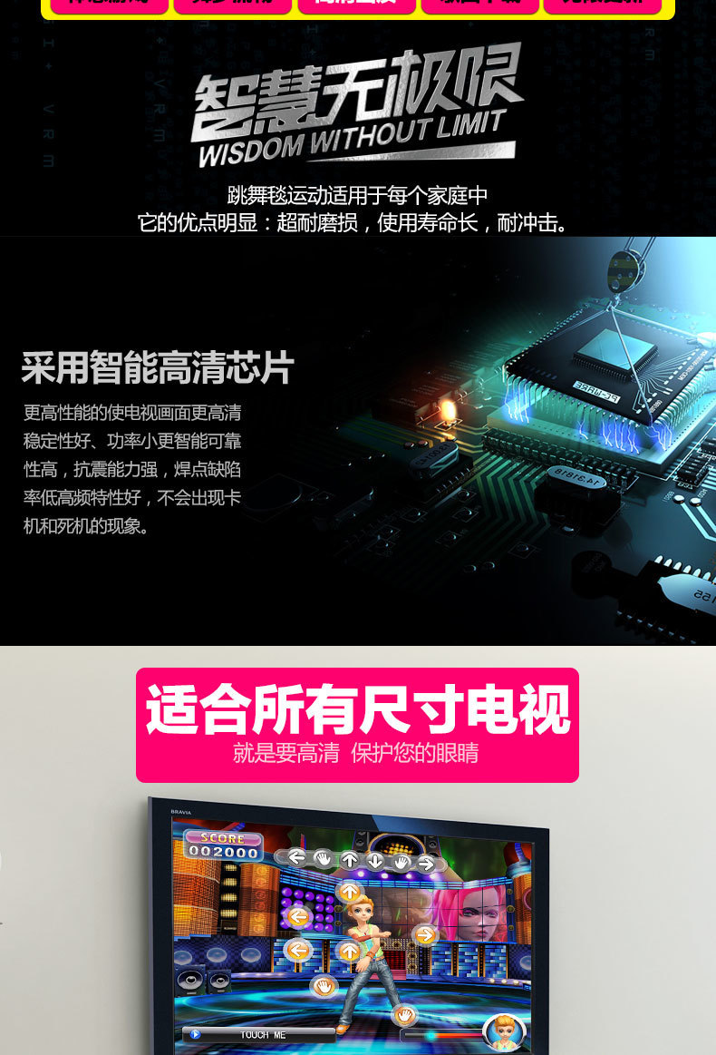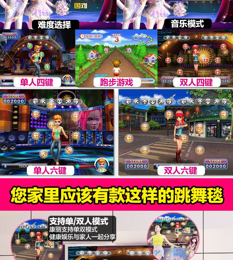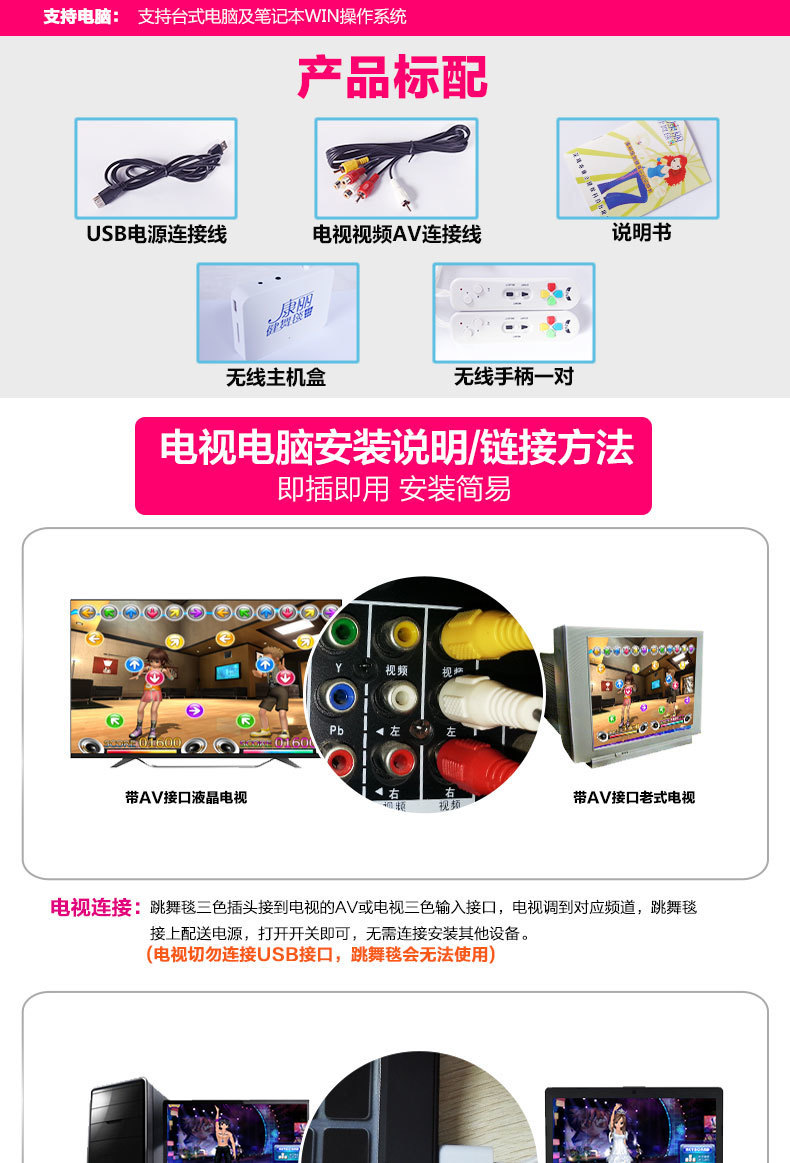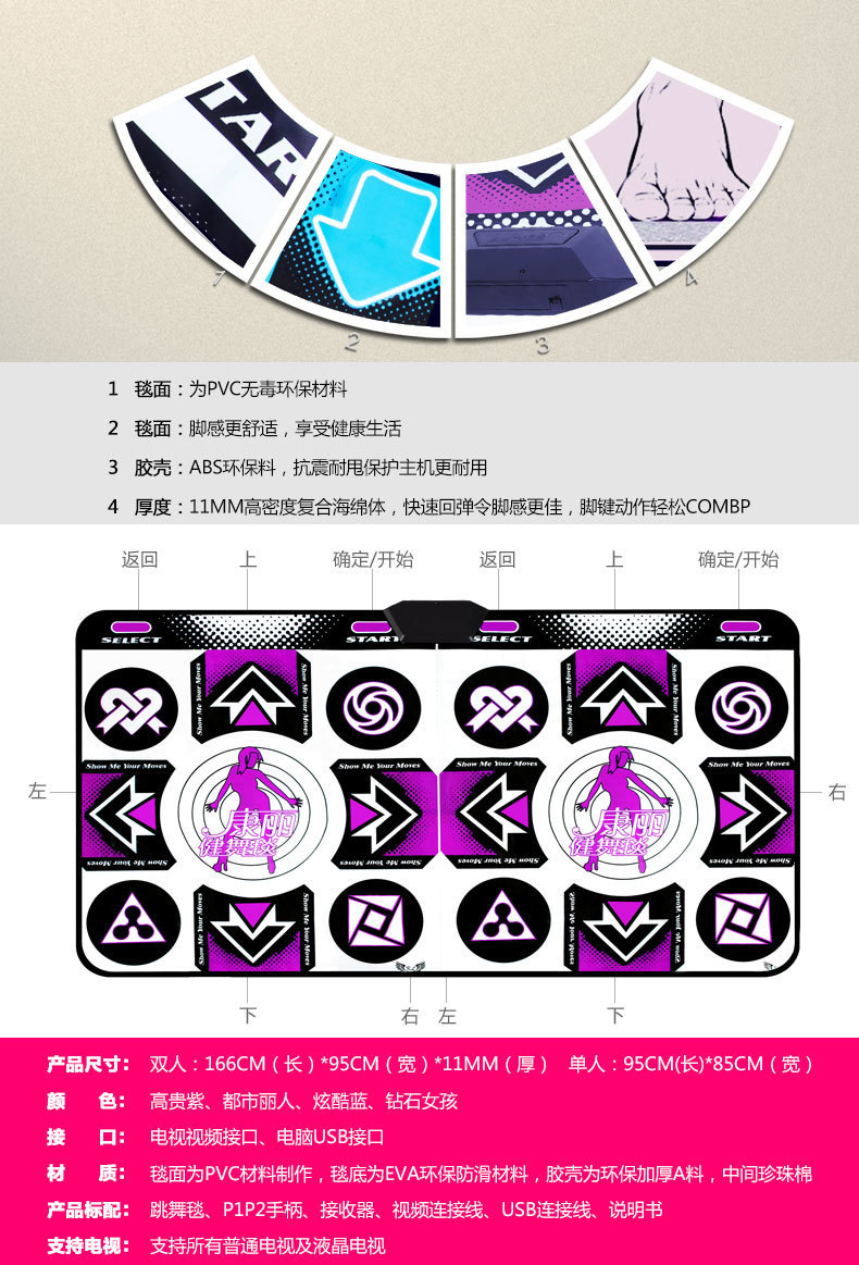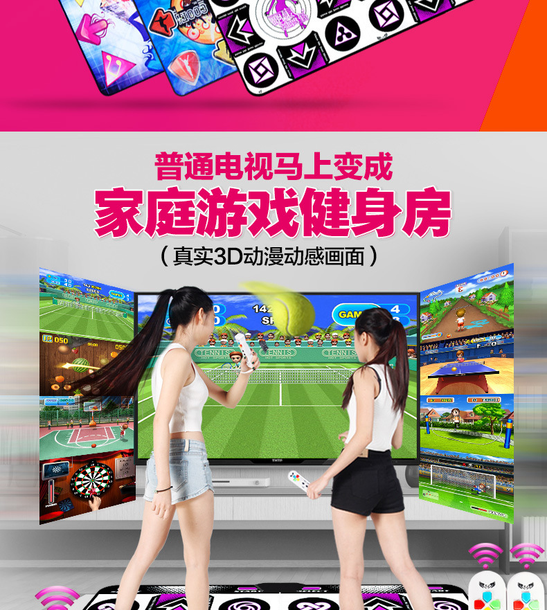 Беспроводной домашний танцевальный коврик для ТВ, одинарный/двойной, 3D соматосенсорный игровой танцевальный тренажер, утолщенный танцевальный коврик, кросс-граничная доставка