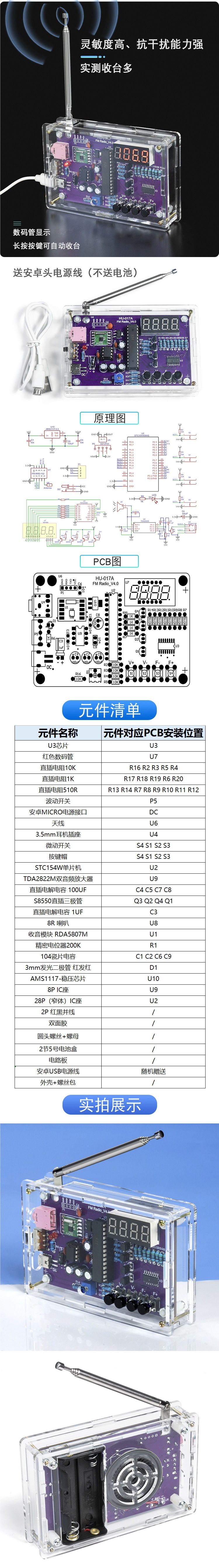 Комплект радио в сборе, печатная плата FM-модуляции частоты, производство микроконтроллера, цифровое производство «сделай сам», практика сварки, оптовая продажа