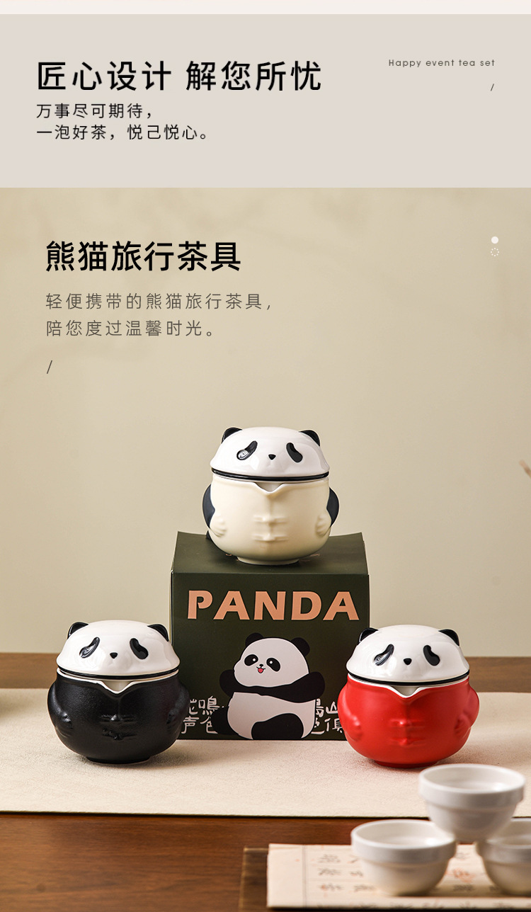 Чайный сервиз с мультяшной пандой-черный; Чайный сервиз с мультяшной пандой — кремово-белый; Чайный сервиз с мультяшной пандой-красный; Чайный сервиз с мультяшной пандой по специальной цене