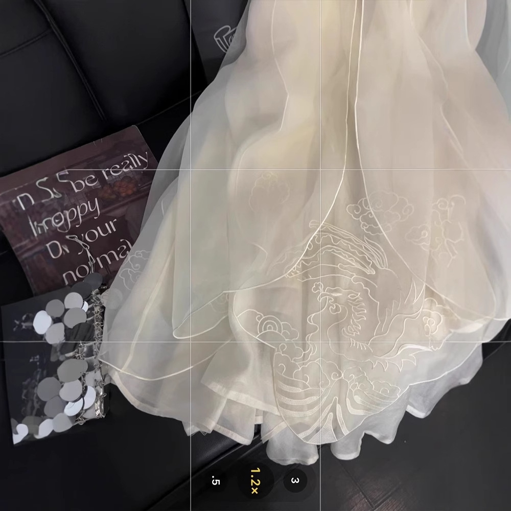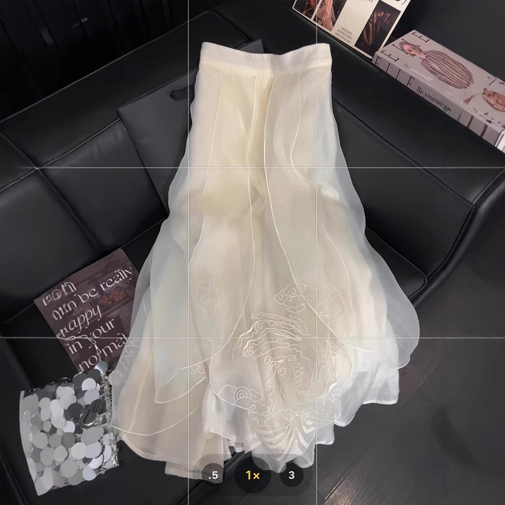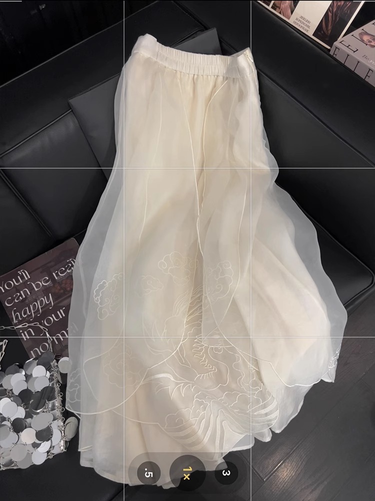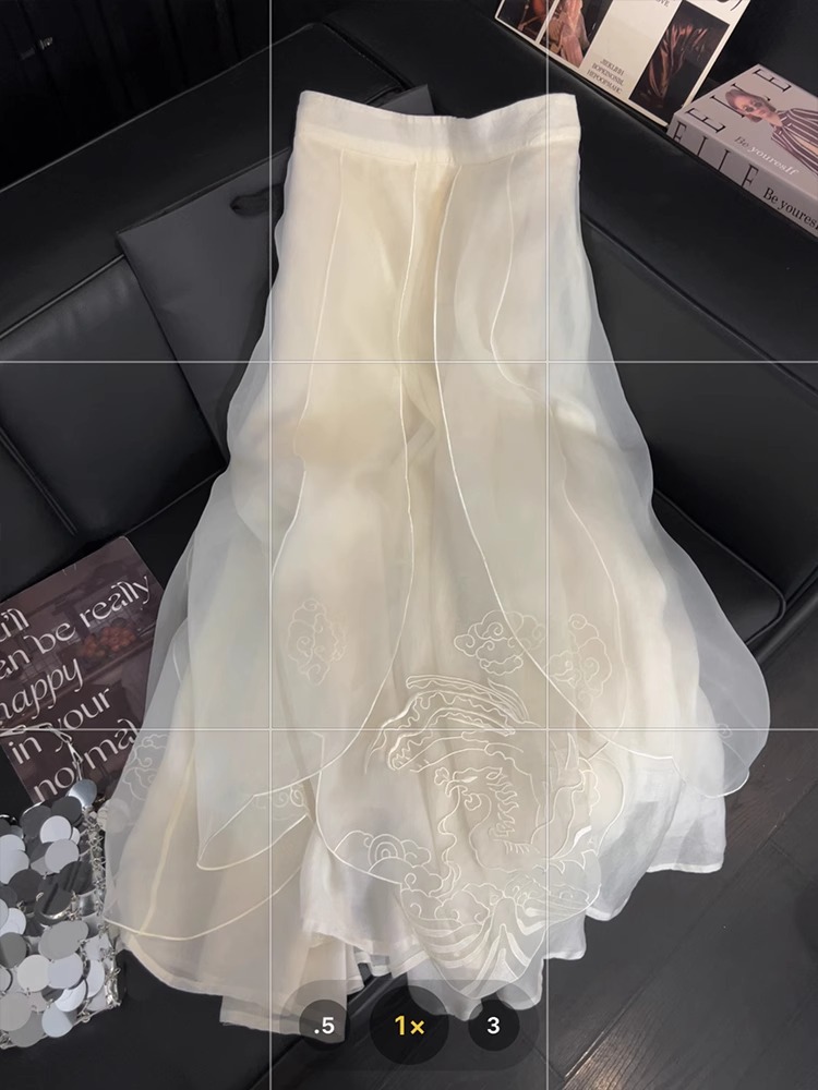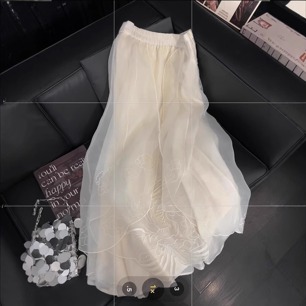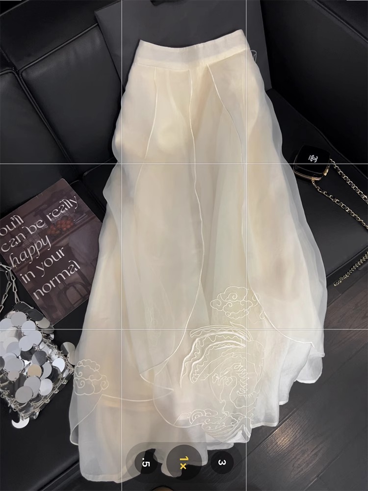 Новая китайская юбка тяжелой промышленности с вышитым бюстом женская белая фея нежный ветер 2025 новая дикая средняя длинная юбка-зонтик