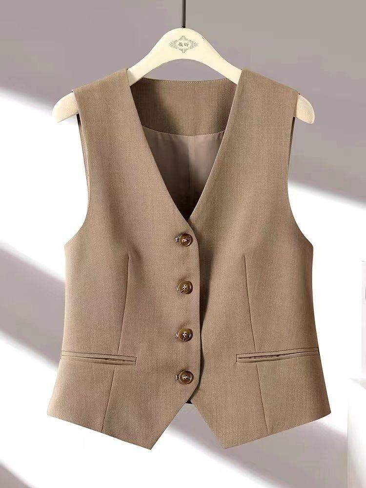 Уменьшающий возраст жилет для выхода на весну и осень, стильный женский костюмный жилет, летний жилет без рукавов нового стиля, многослойный жилет.