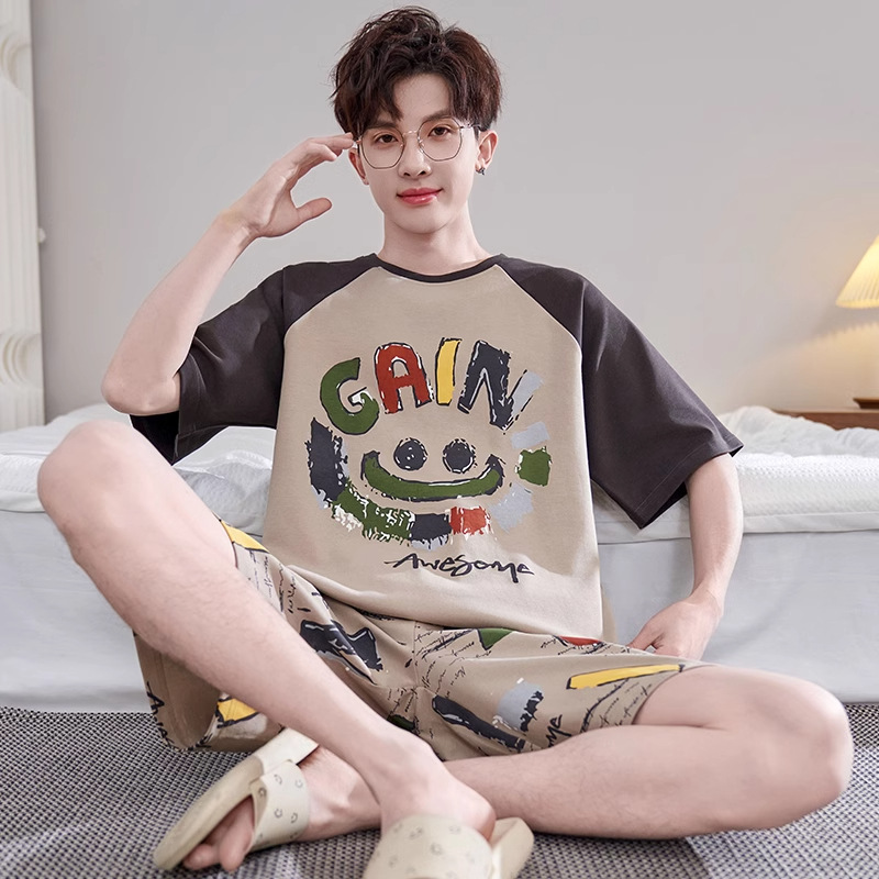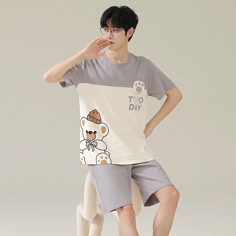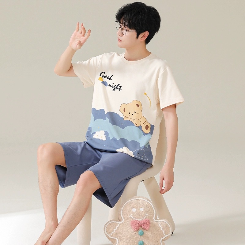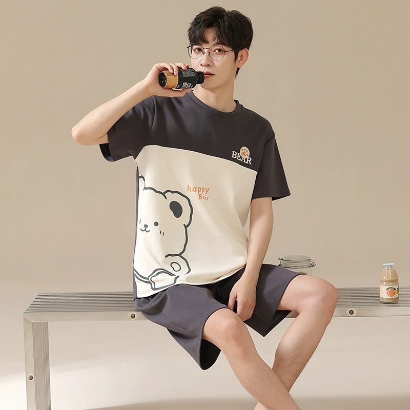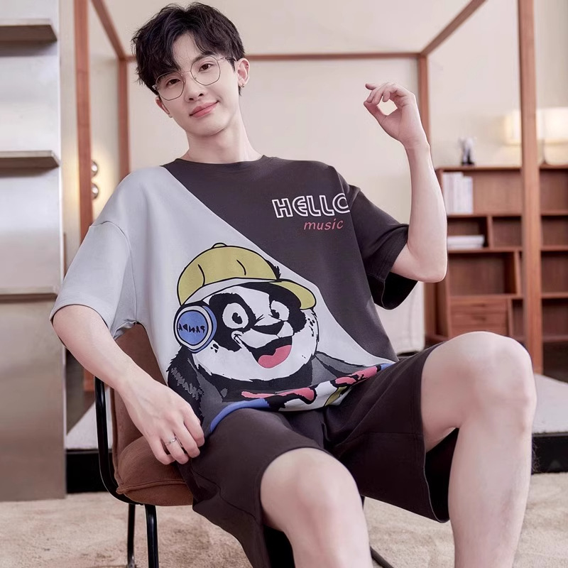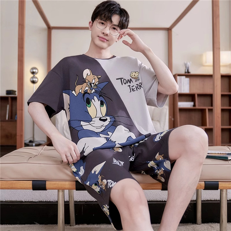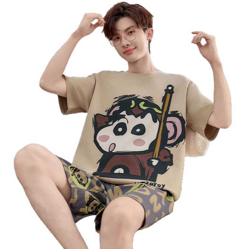 Новые пижамы, мужские летние шорты с короткими рукавами, костюм в корейском стиле, свободная повседневная верхняя одежда больших размеров с героями мультфильмов, домашняя одежда