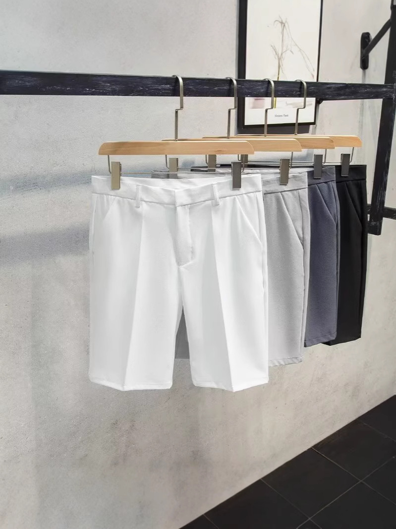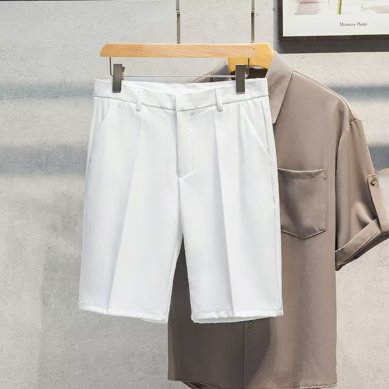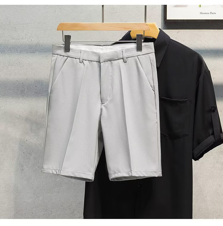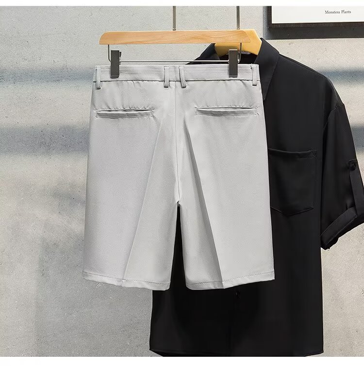 Новые летние тонкие белые прямые брюки с 5 точками, модные мужские летние повседневные шорты из ледяного шелка с пятью точками