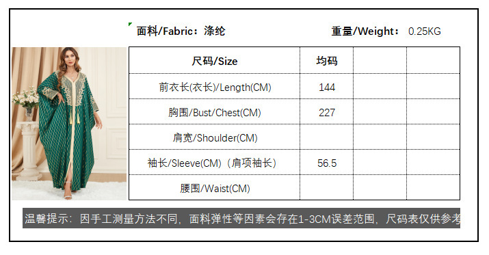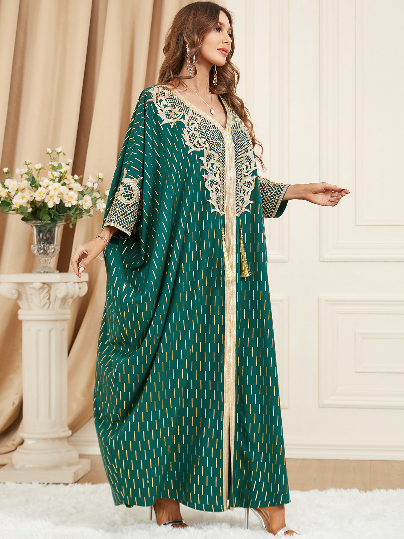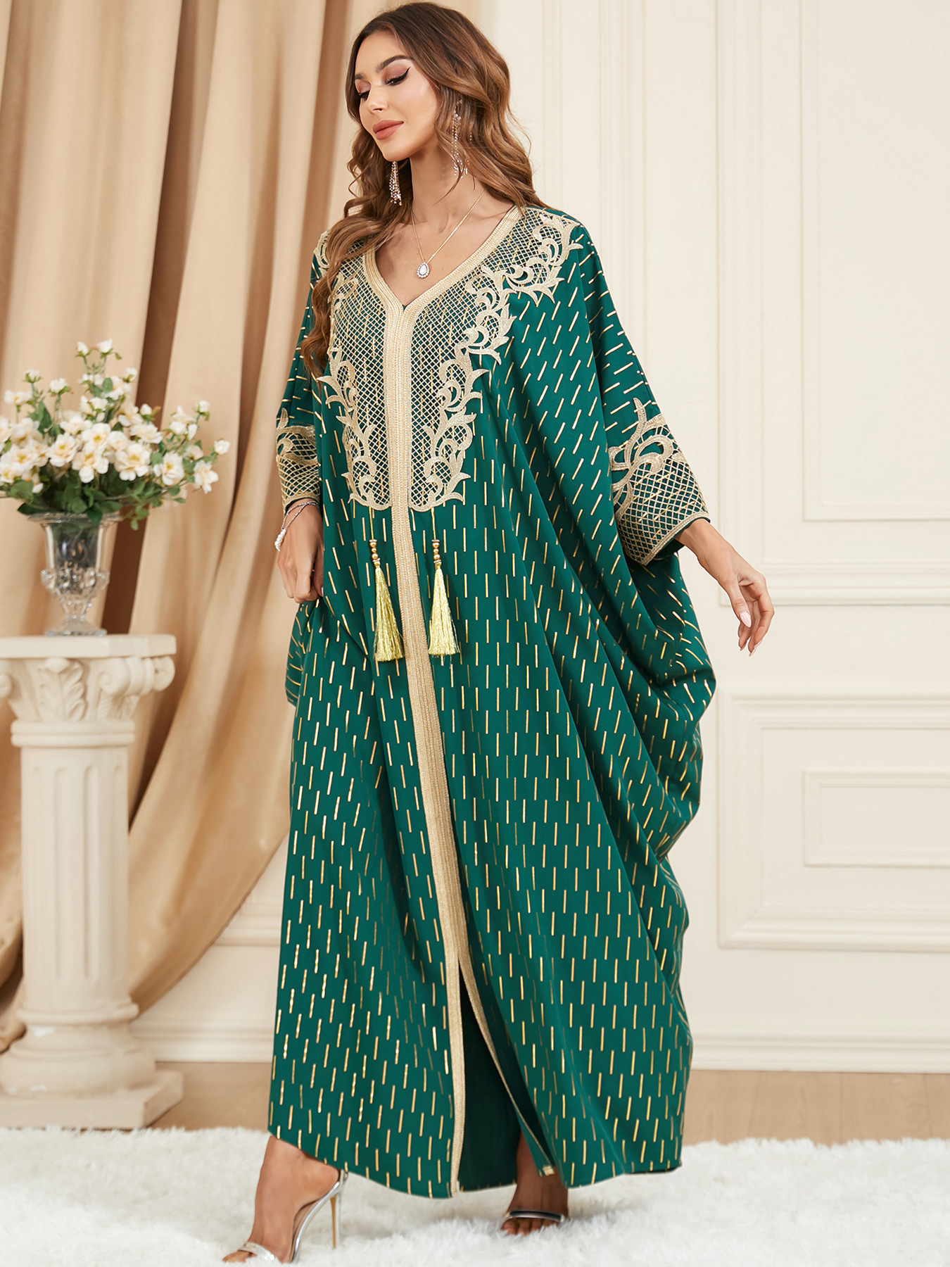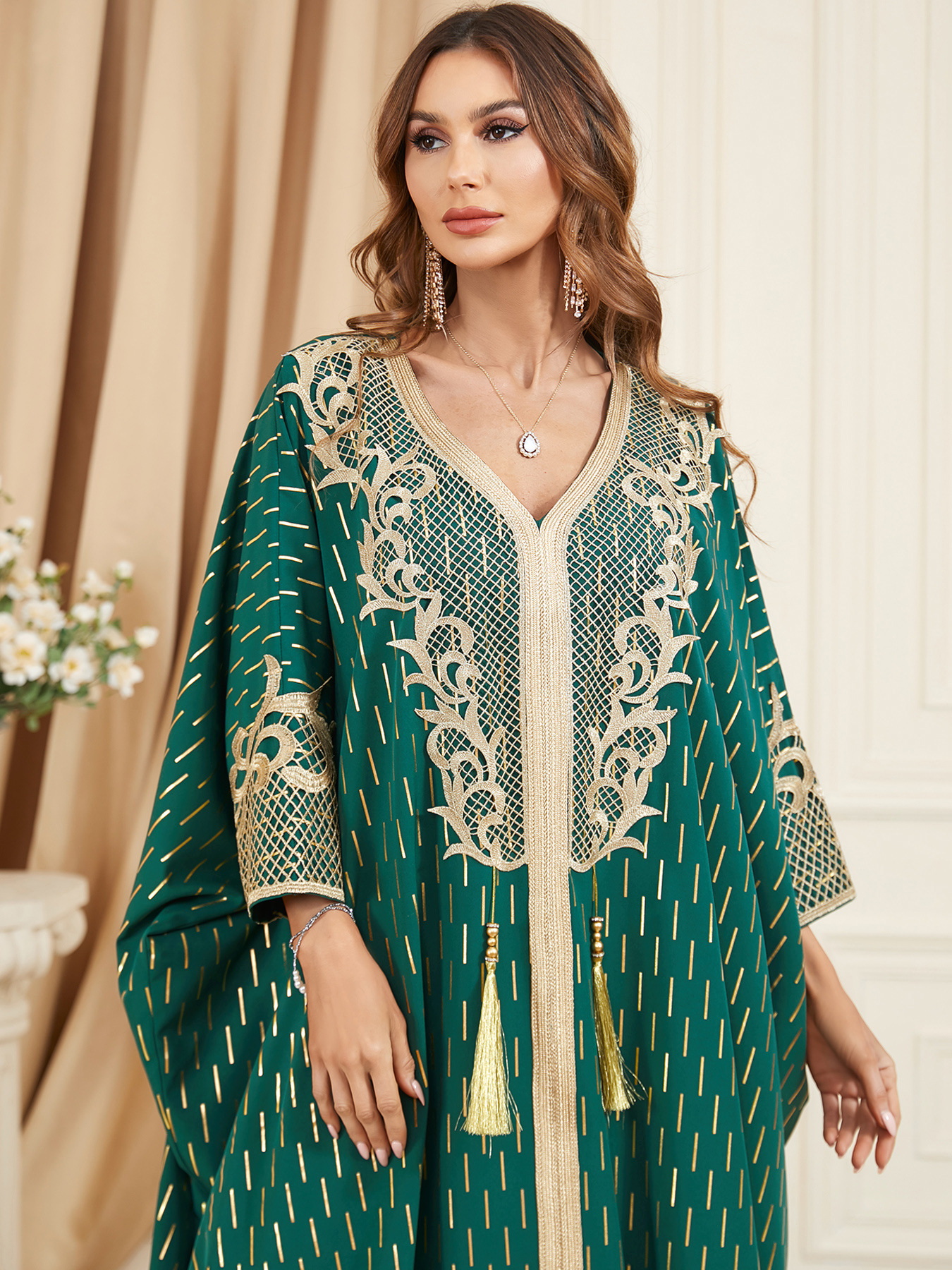 3461 мусульманский зеленый бронзовый рукав летучей мыши с воротником