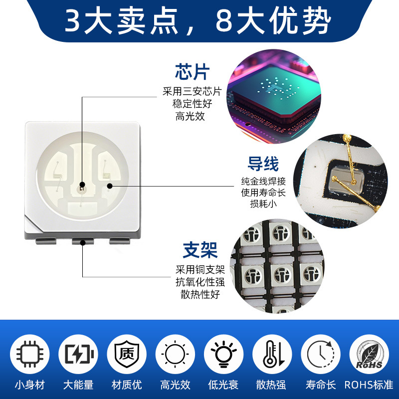 Бусины лампы 5050rgb очень яркие (синий свет с выемкой чипа San'an отрицательный), бусины лампы 5050rgb очень яркие (синий свет с выемкой чипа Jingyuan отрицательный)