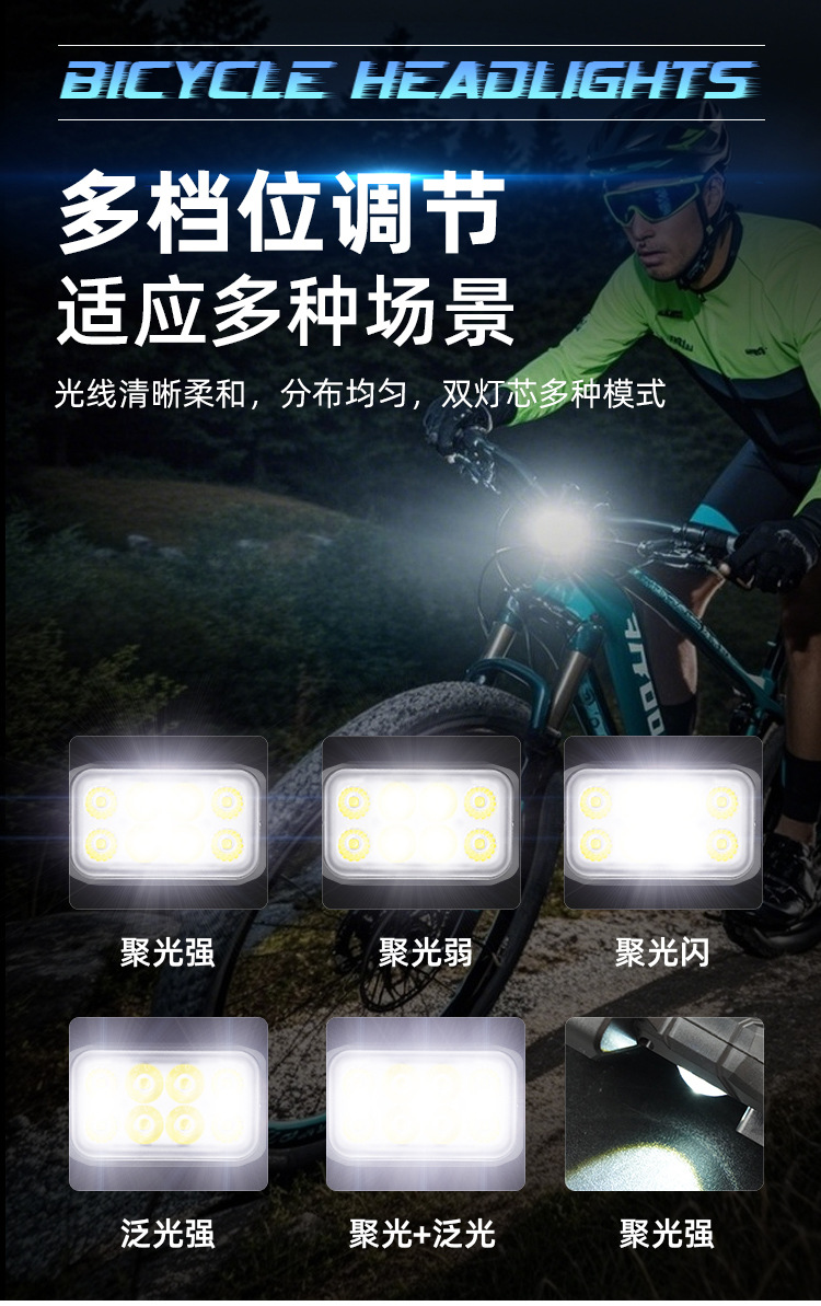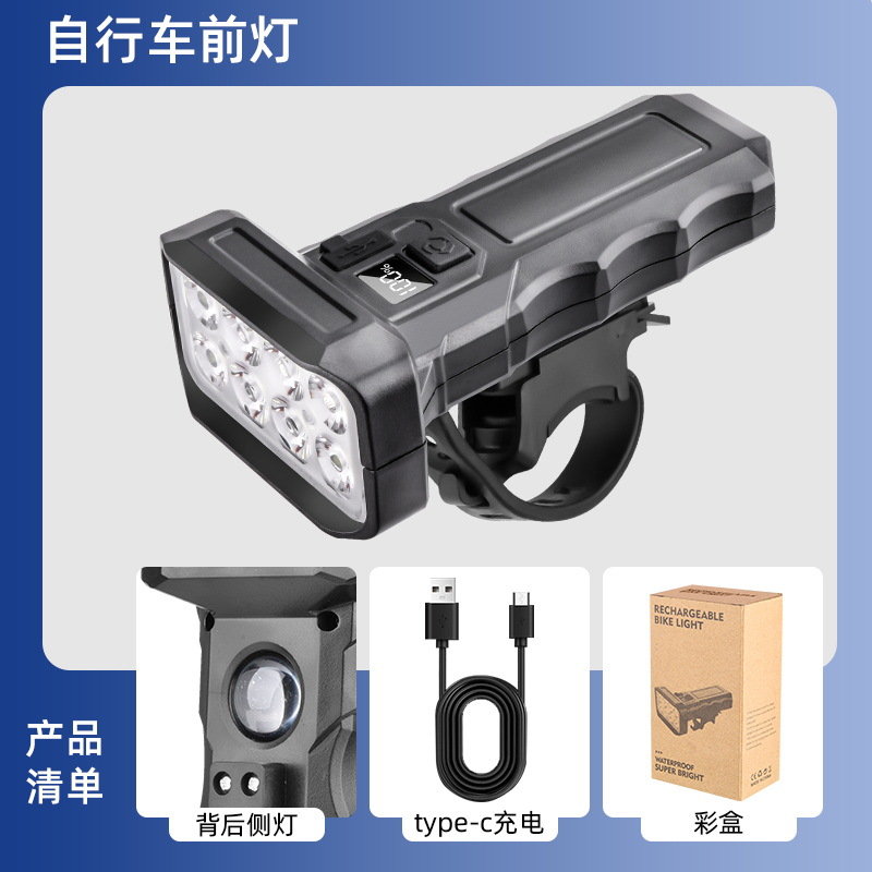 Велосипедная фара для горного велосипеда, фара для ночной езды, сильный свет, зарядка, велосипедный фонарь, дисплей мощности, велосипедная экипировка