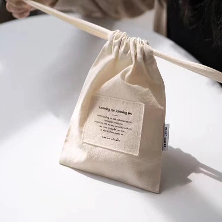 Индивидуальный холщовый мешочек с различными вариантами цвета, тканевой этикеткой и завязками для хранения духов, помады, предметов первой необходимости и мелких аксессуаров.